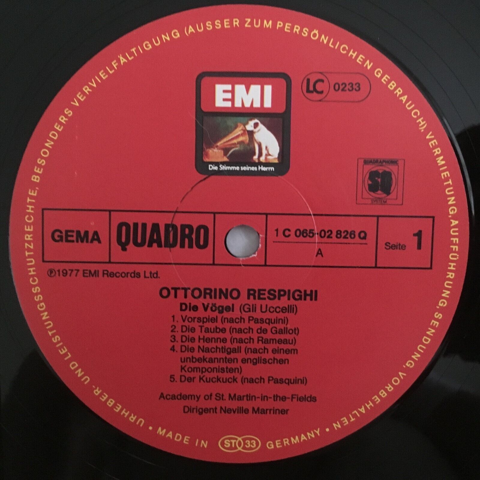 J233 Respighi Gli Uccelli / Trittico Botticelliano Marriner EMI 1C 065-02 826 Q