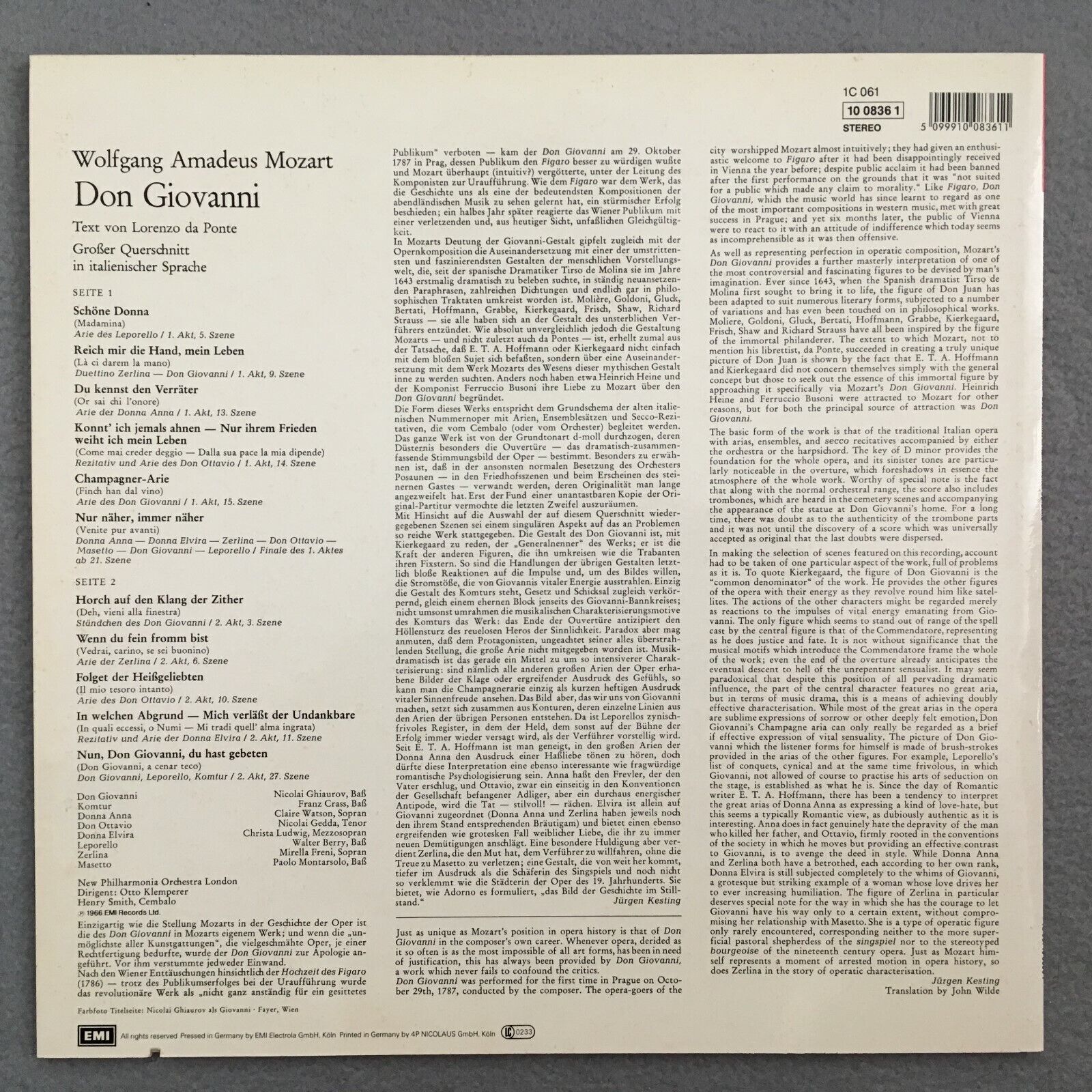 J263 Mozart Don Giovanni Ludwig Gedda Berry Klemperer EMI 1C 061 10 0836 1 Stere