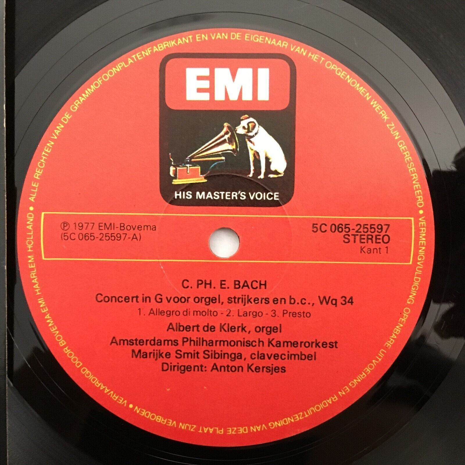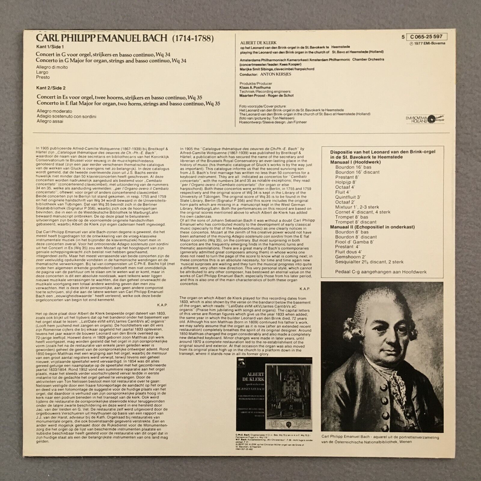 J278 C.P.E. Bach Organ Concertos De Klerk Kersjes EMI 5 C 065-25 597 Stereo