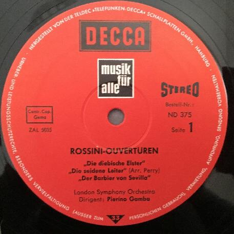 P438 Rossini Overtures Diebische Elster W. Tell Gamba LSO DECCA ND 375 Stereo