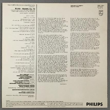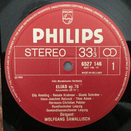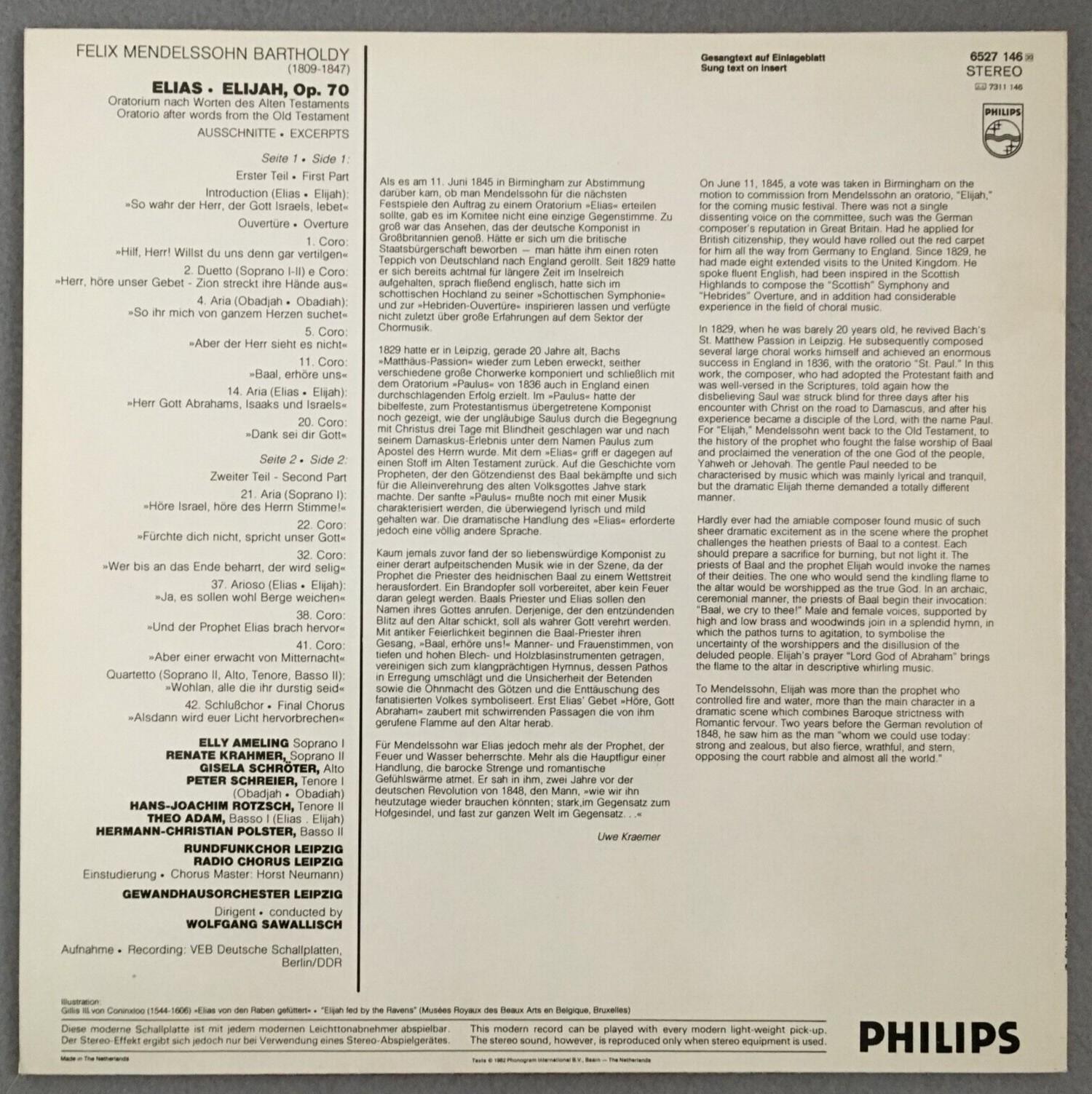P441 Mendelssohn Elijah Ameling Schreier Adam Sawallisch Philips 6527 146 Stereo