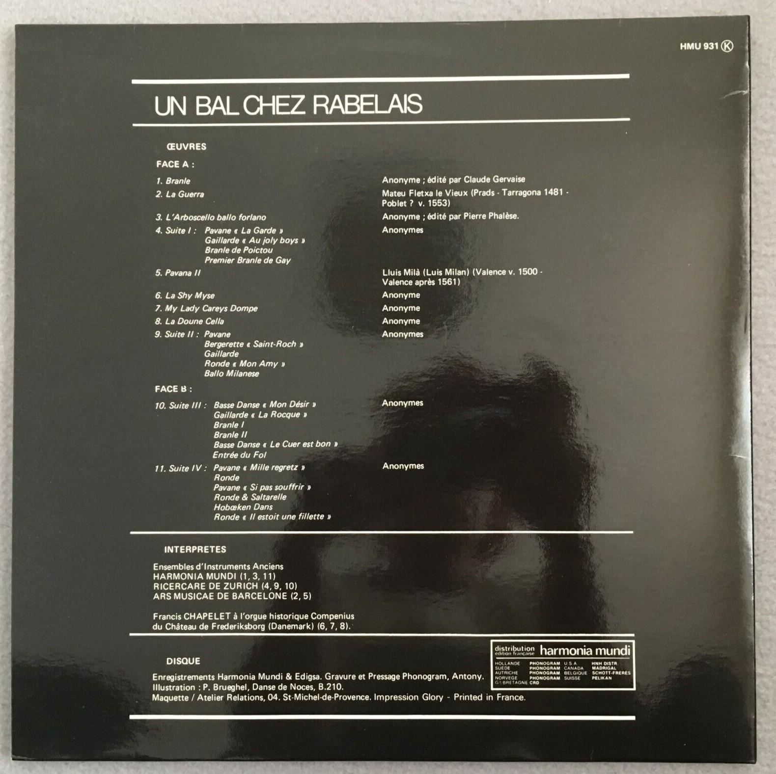 P476 Un Bal Chez Rabelais Chapelet Organ Ars Musica Barcelona HM 931