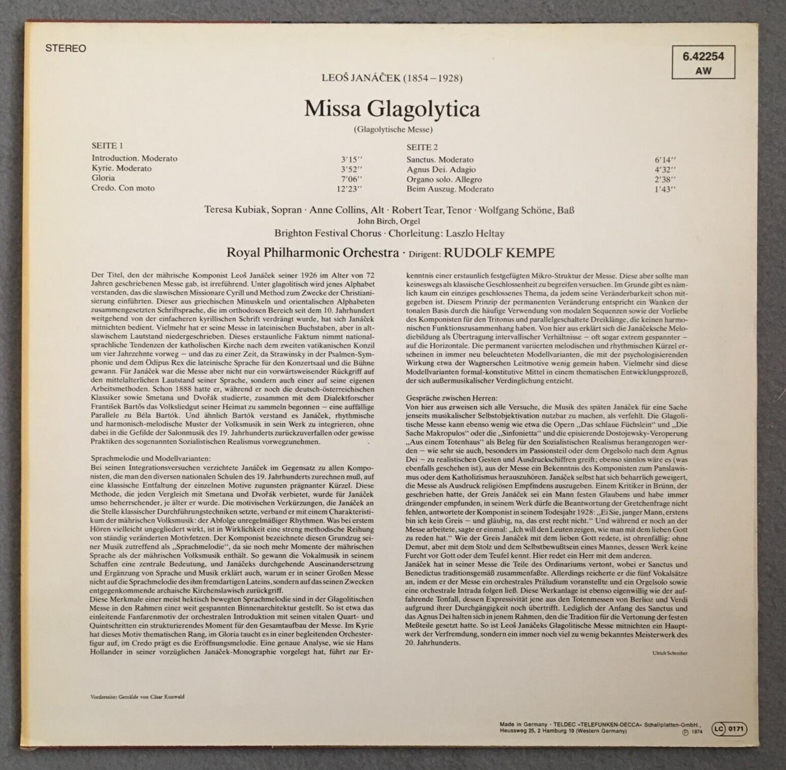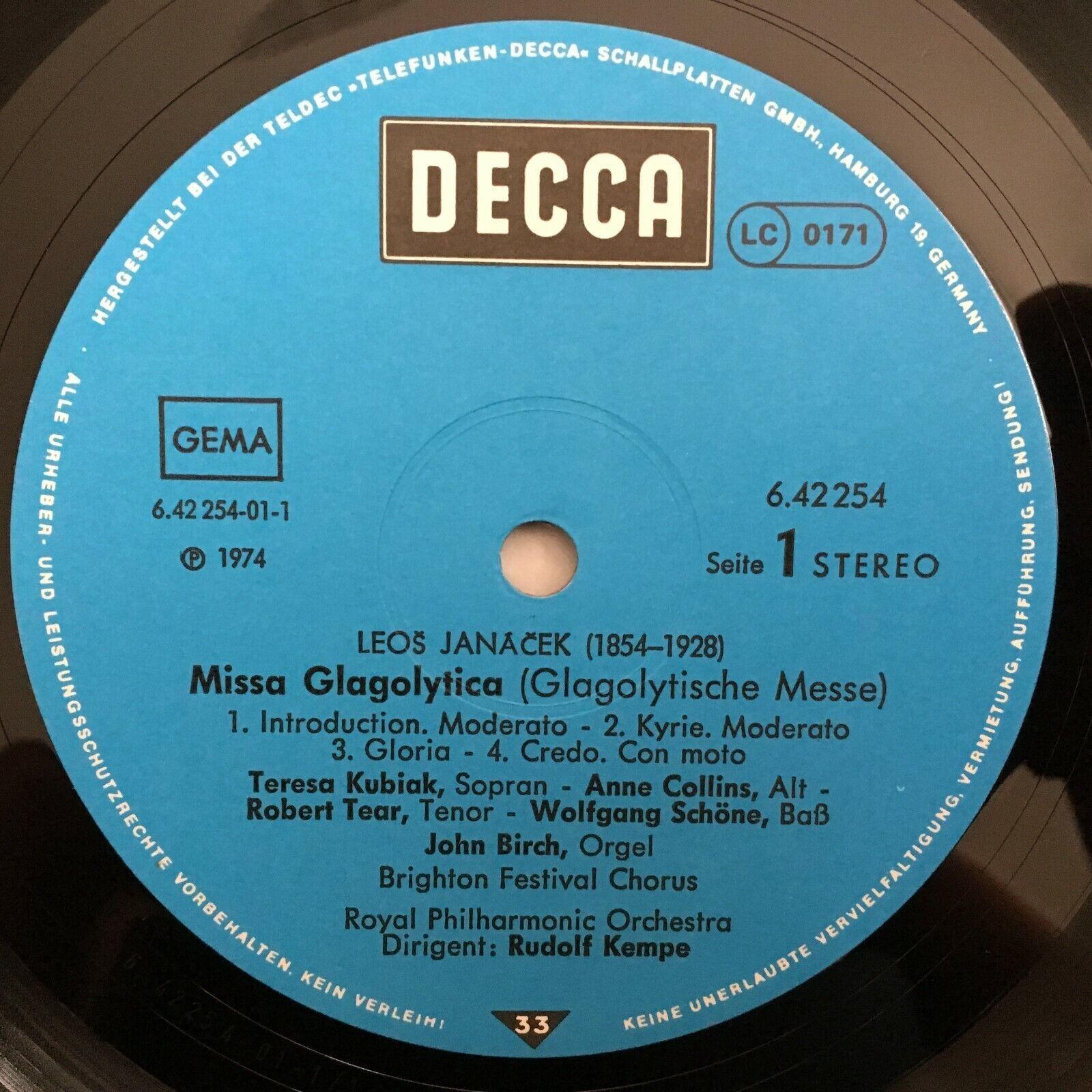 P498 Janacek Missa Glagolytica Kubiak Collins Tear Kempe DECCA 6.42254 AW Stereo