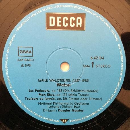 P508 Waldteufel Waltzes Die Schlittschuhläufer Gamley DECCA 6.42104 AP Stereo