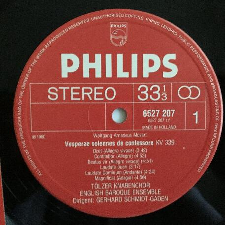 P372 Mozart Vesperae Solennes Ave Verum Schmidt-Gaden Philips 6527 207 Stereo