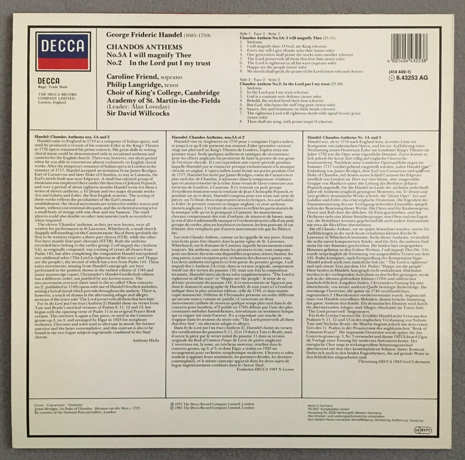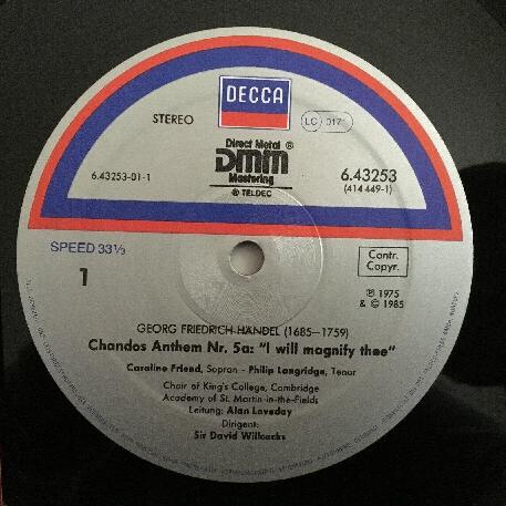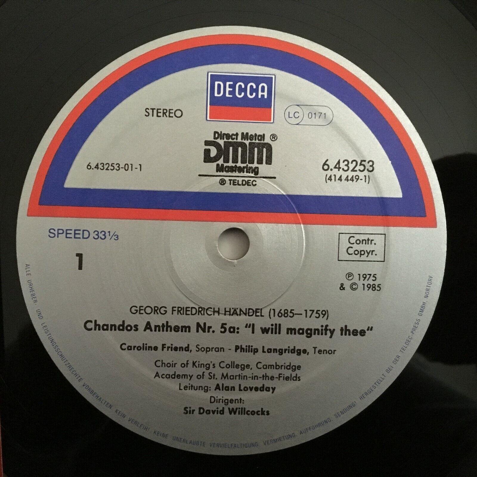 P215 Handel Chandos Anthems Friend Willcocks DECCA 6.43253 AG Digital Stereo