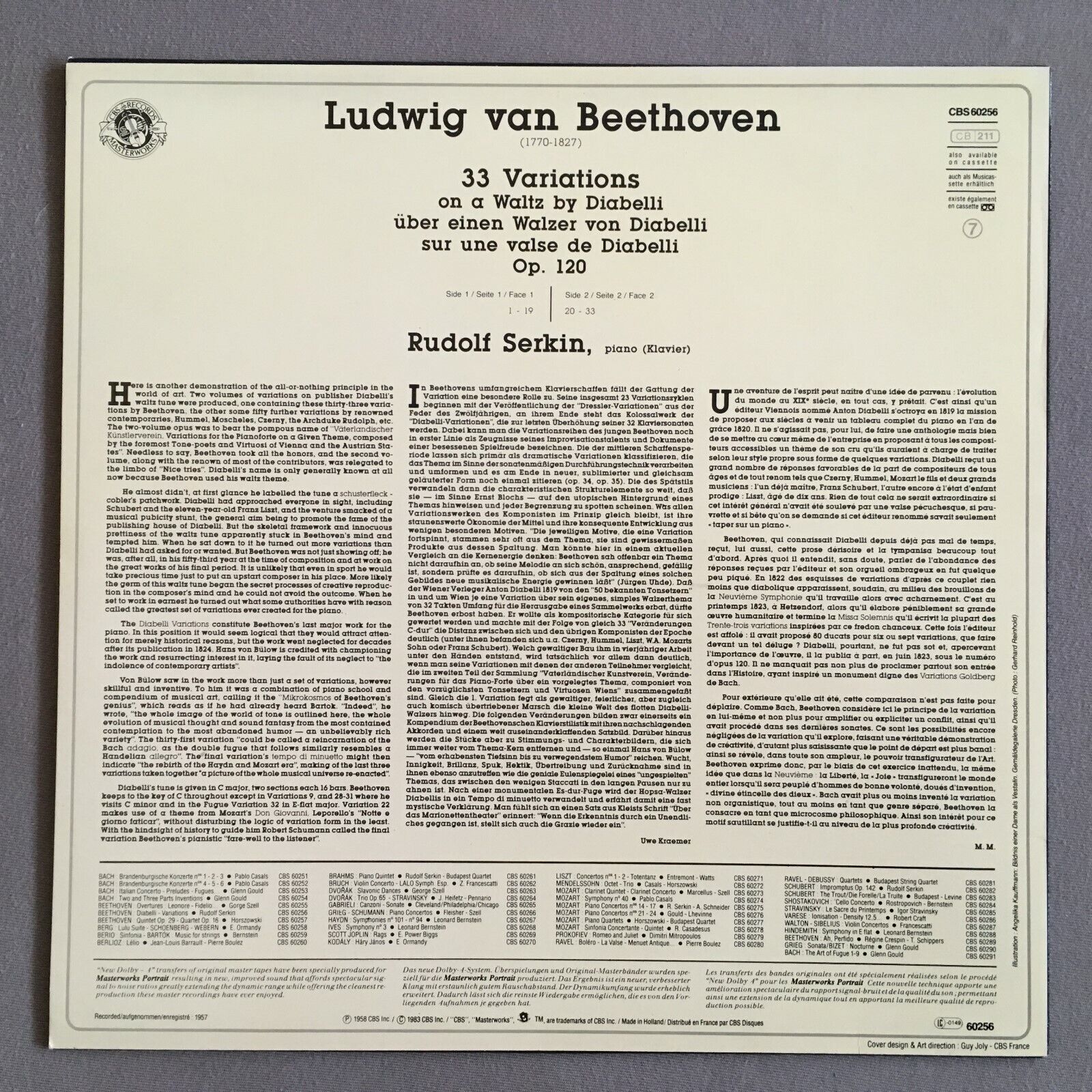 X112 Beethoven Diabelli Variations Op.120 Serkin / Piano CBS 60256 Stereo