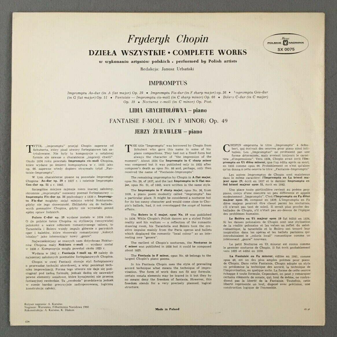 J056 Chopin Complete Works Impromptus Wszystkie Grychtolowna Muza SX 0075 Stereo