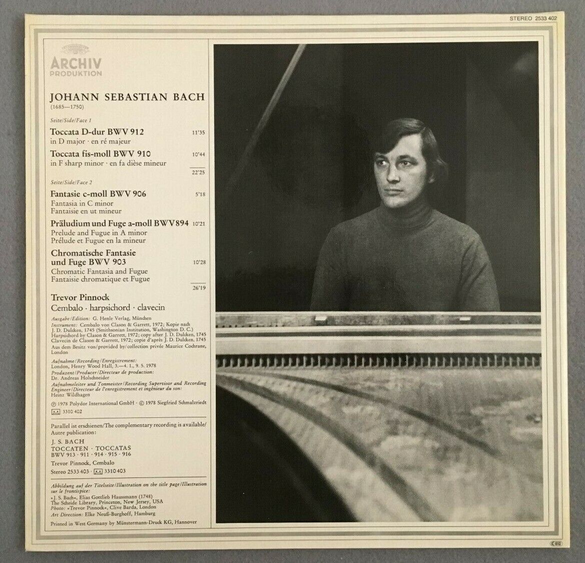 J047 Bach Toccatas Pinnock Cembalo DGG Archiv 2533 402 Stereo