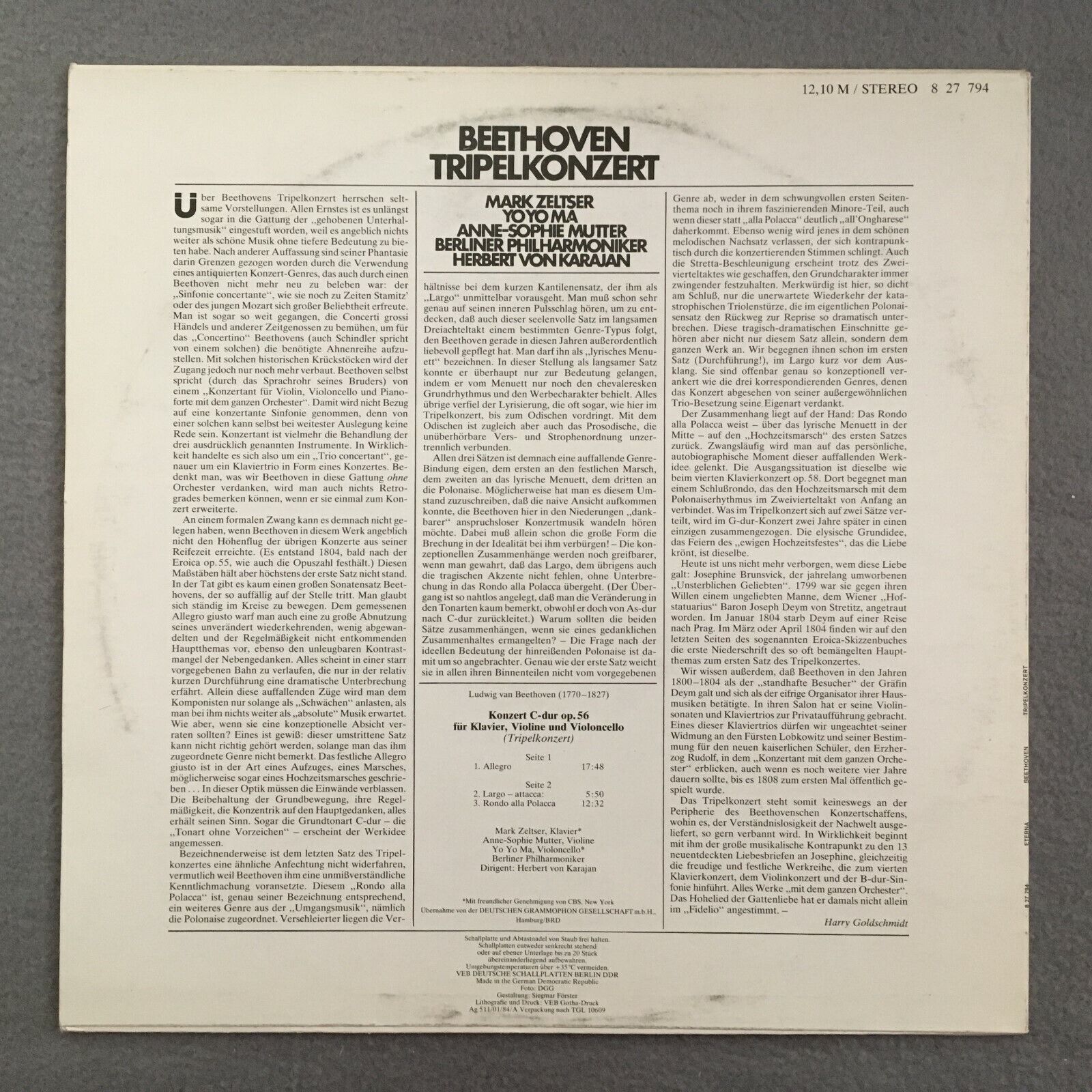 X348 Beethoven Triple Concerto Mutter Yo Yo Ma Karajan Eterna 8 27 794 Stereo