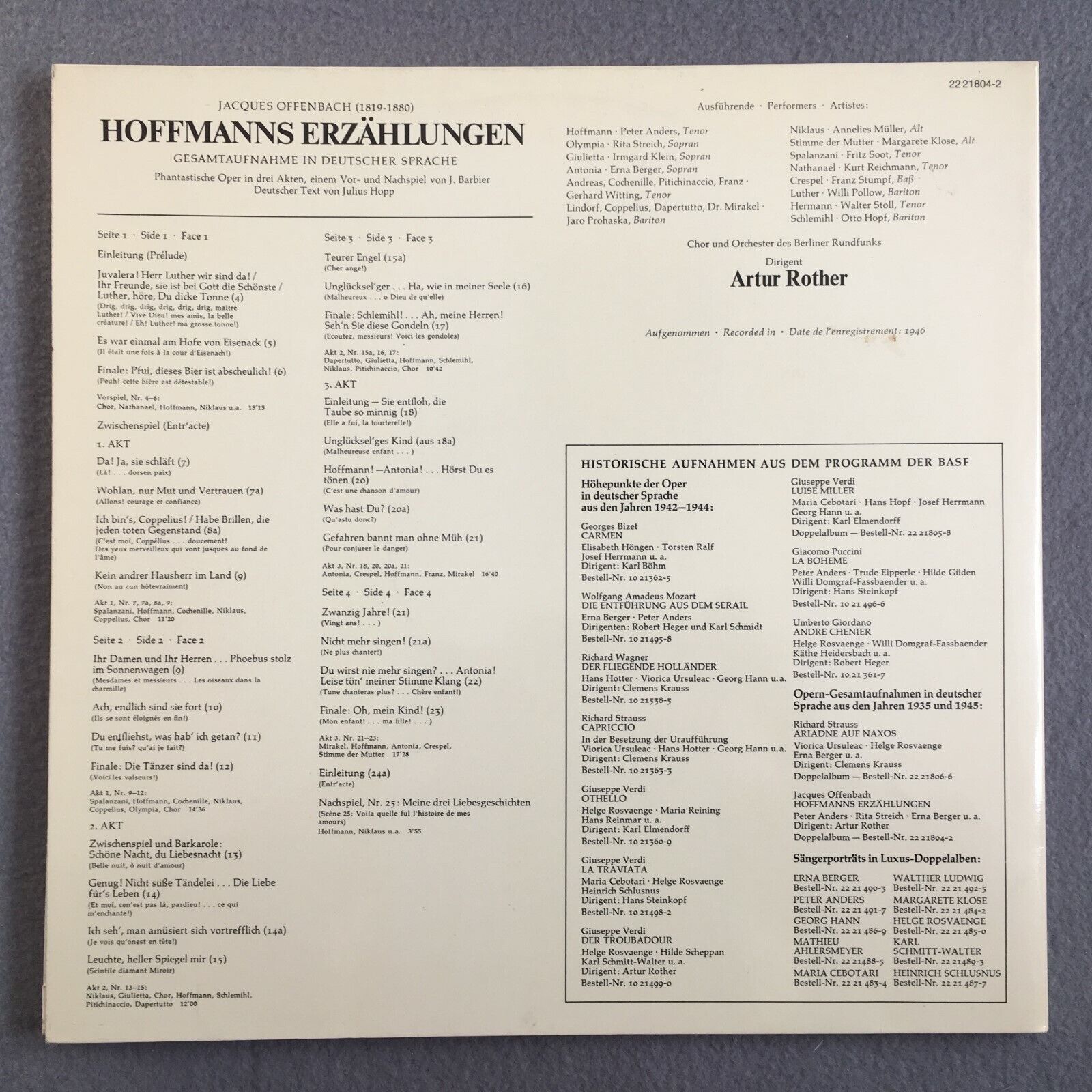 X378 Offenbach Tales of Hoffmann Streich Rother 2LP BASF 22 21804-2 Stereo