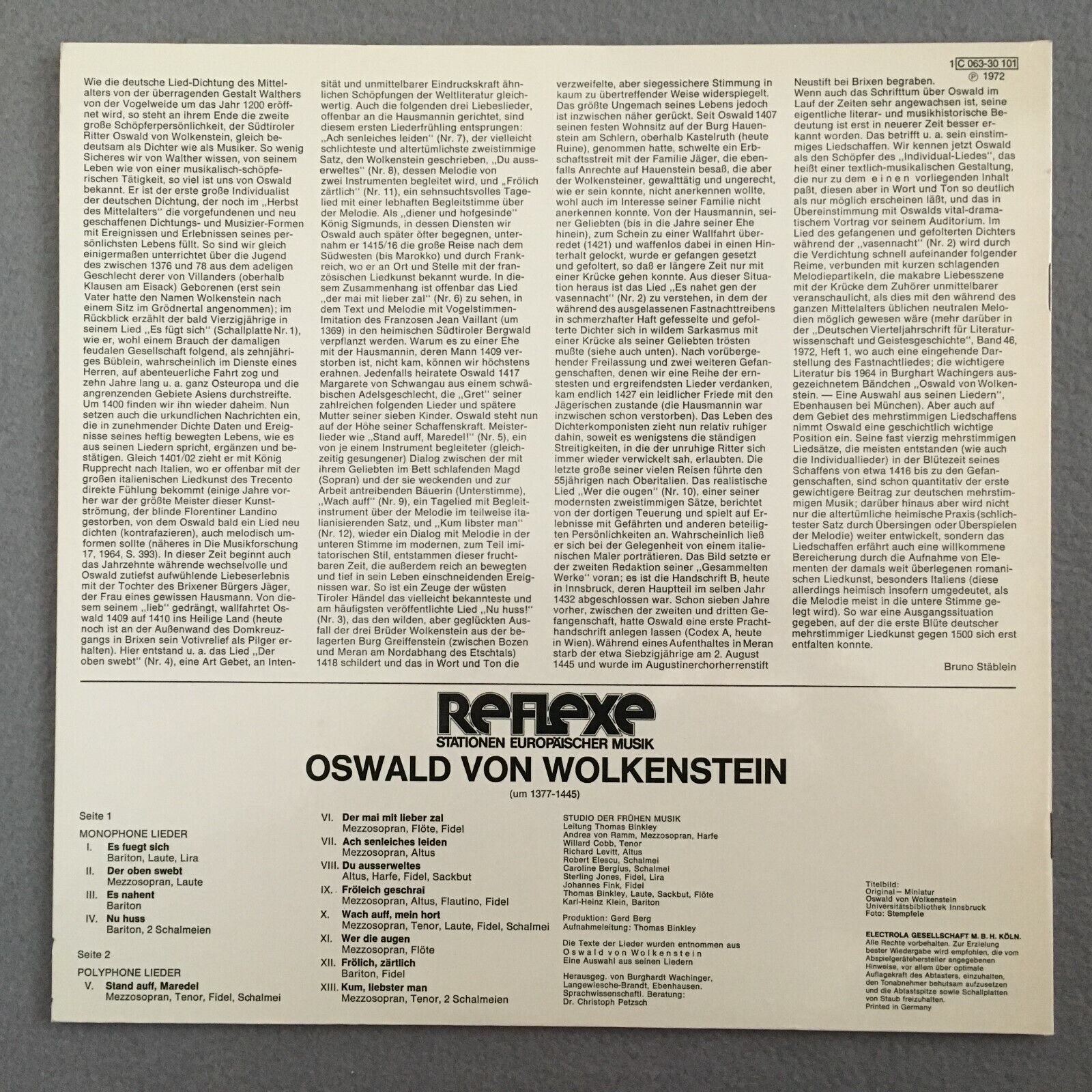 X412 Wolkenstein Monophone Songs Binkley Ramm Klein EMI 1 C 063-30 101 Stereo
