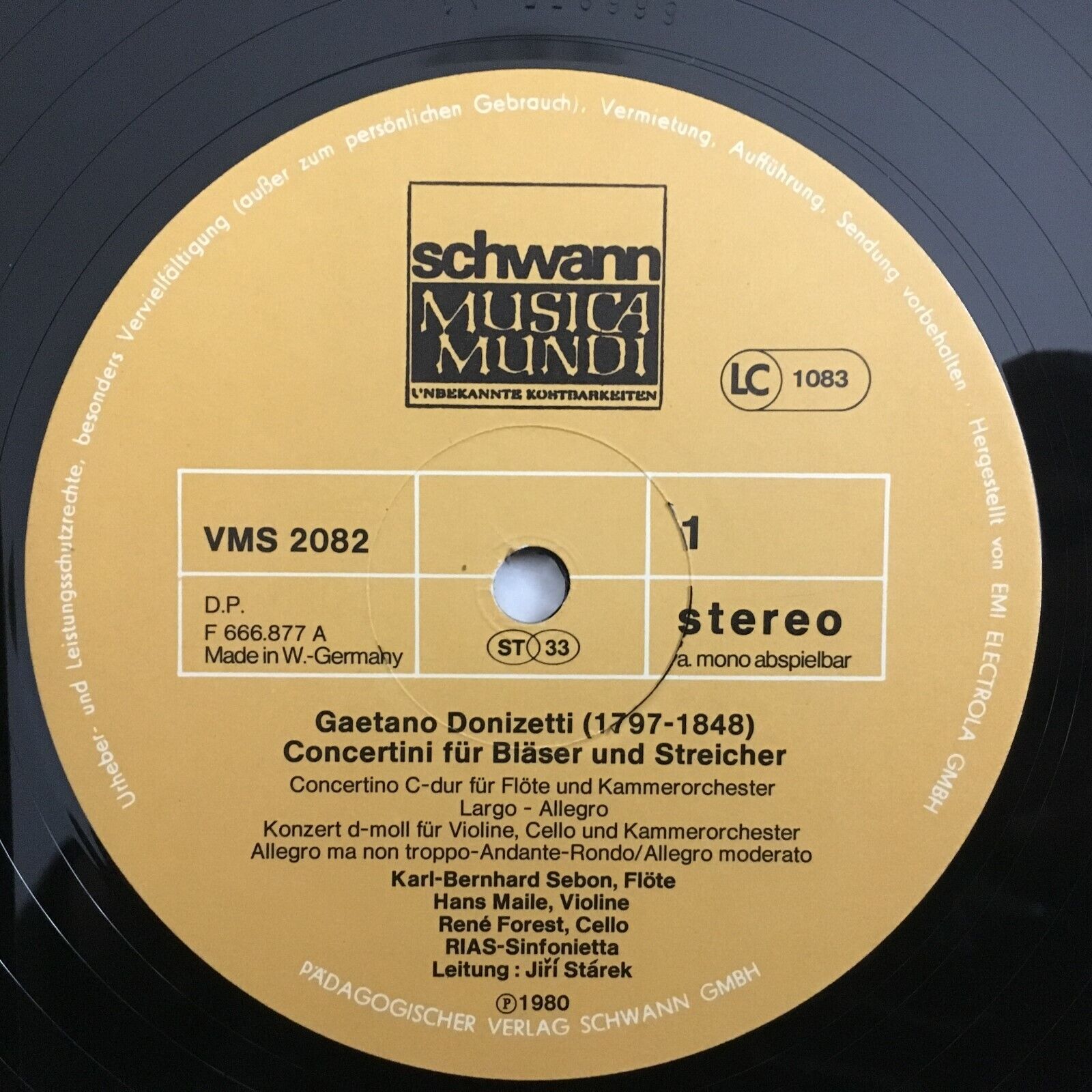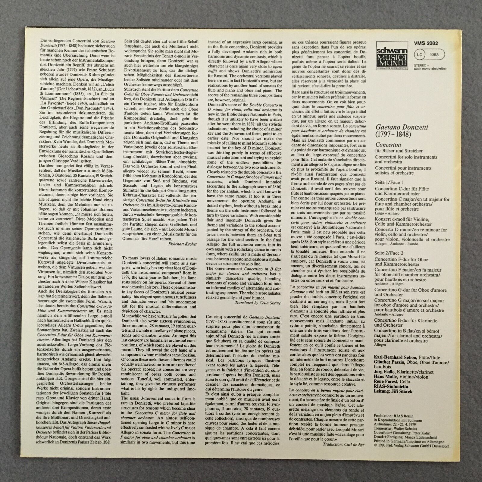 X414 Donizetti Concertos for Strings & Winds Starek Schwann VMS 2082 Stereo