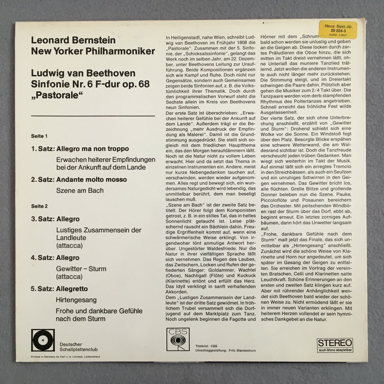 X609 Beethoven Symphony No.6 Pastorale Bernstein CBS J 224/7 Stereo