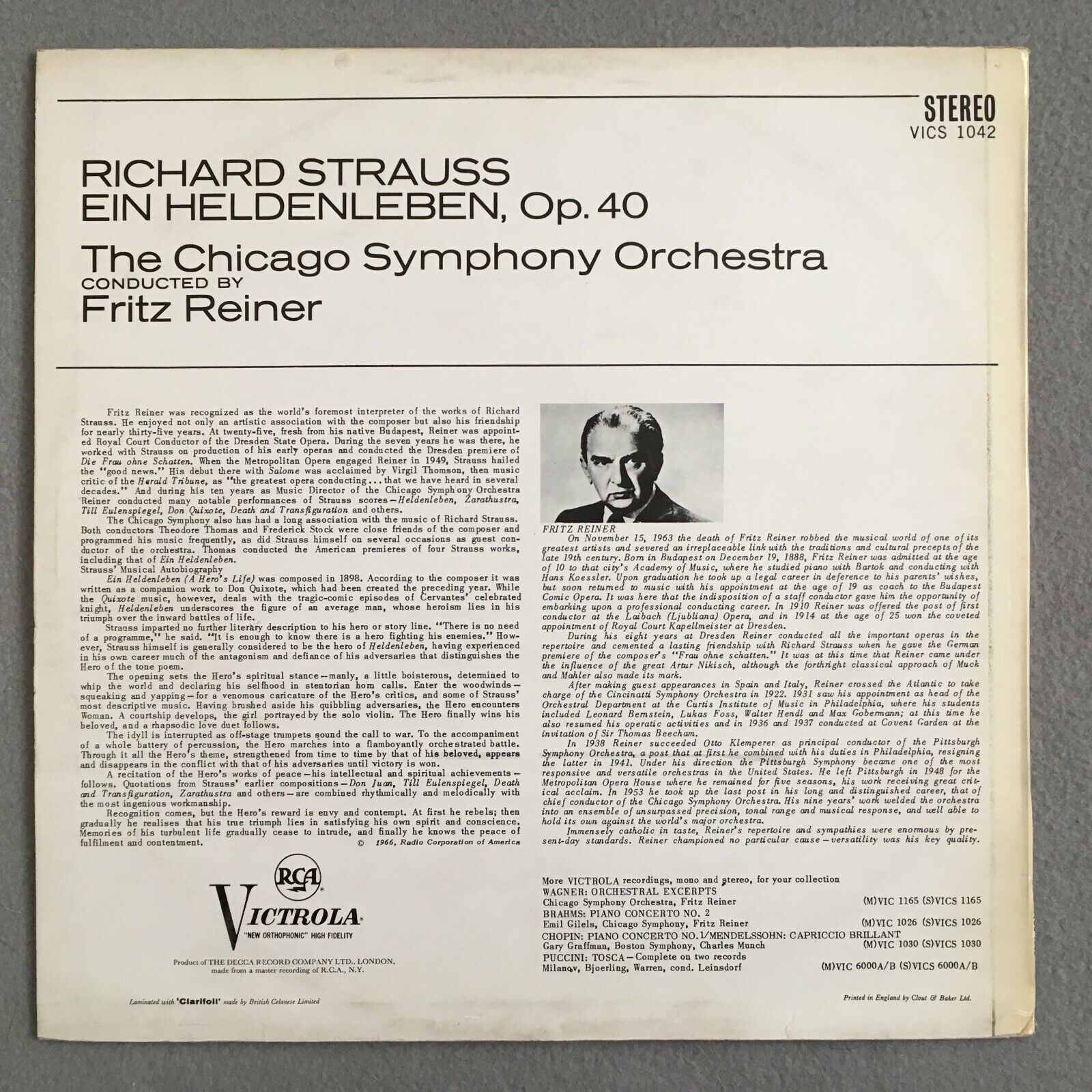 X624 R. Strauss Ein Heldenleben Reiner RCA Victrola VICS 1042 Stereo