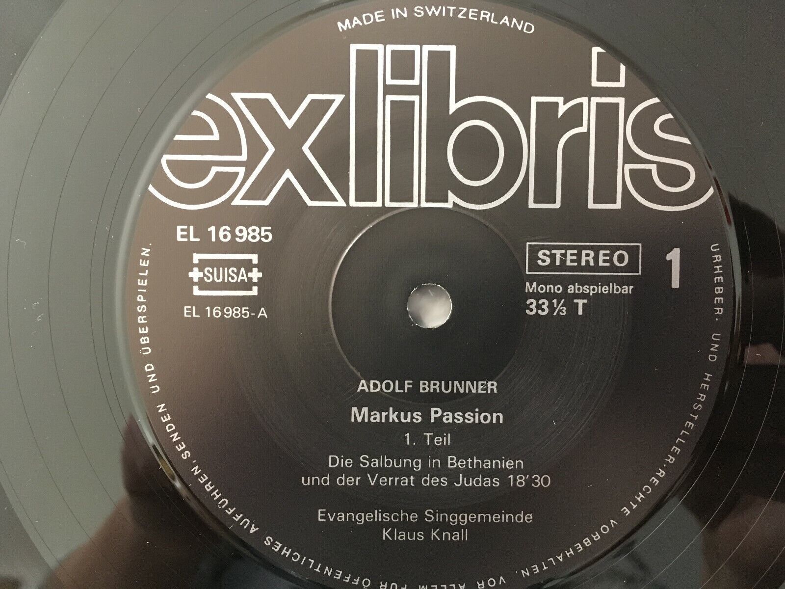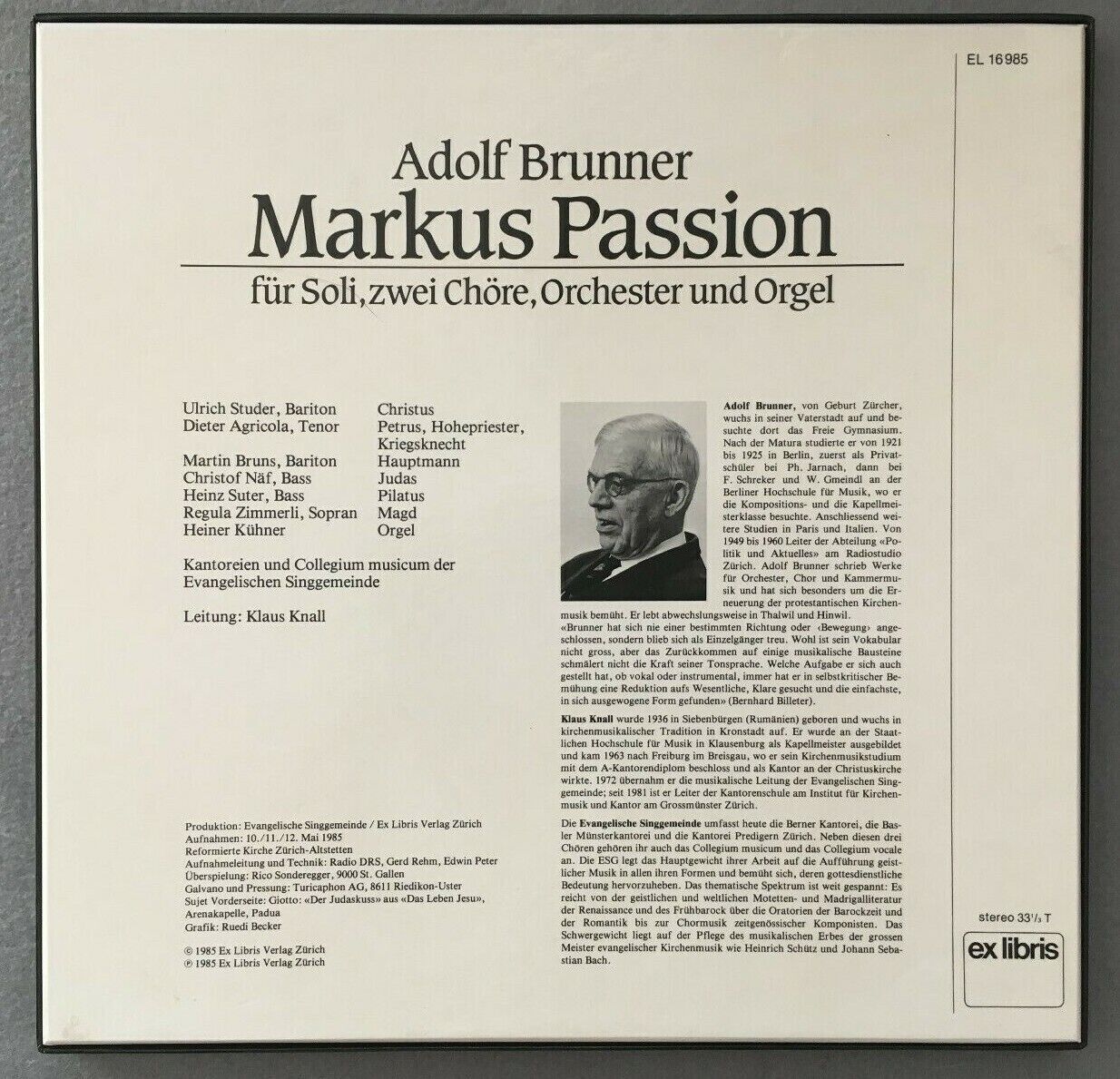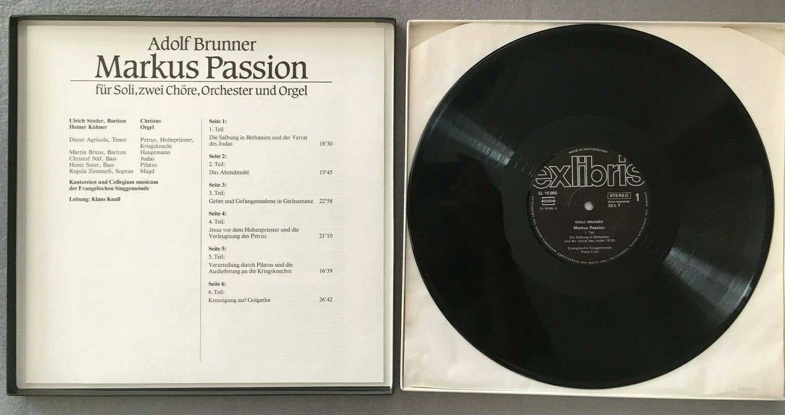 B665 Brunner St. Markus Passion Knall 3LP Ex Libris EL 16 985 Stereo Swiss
