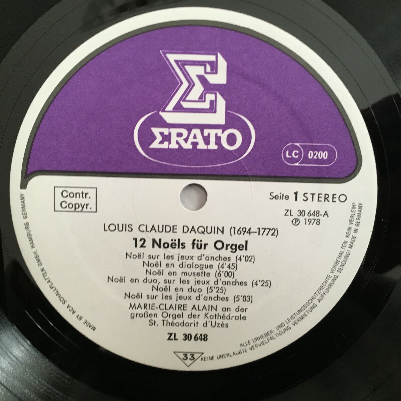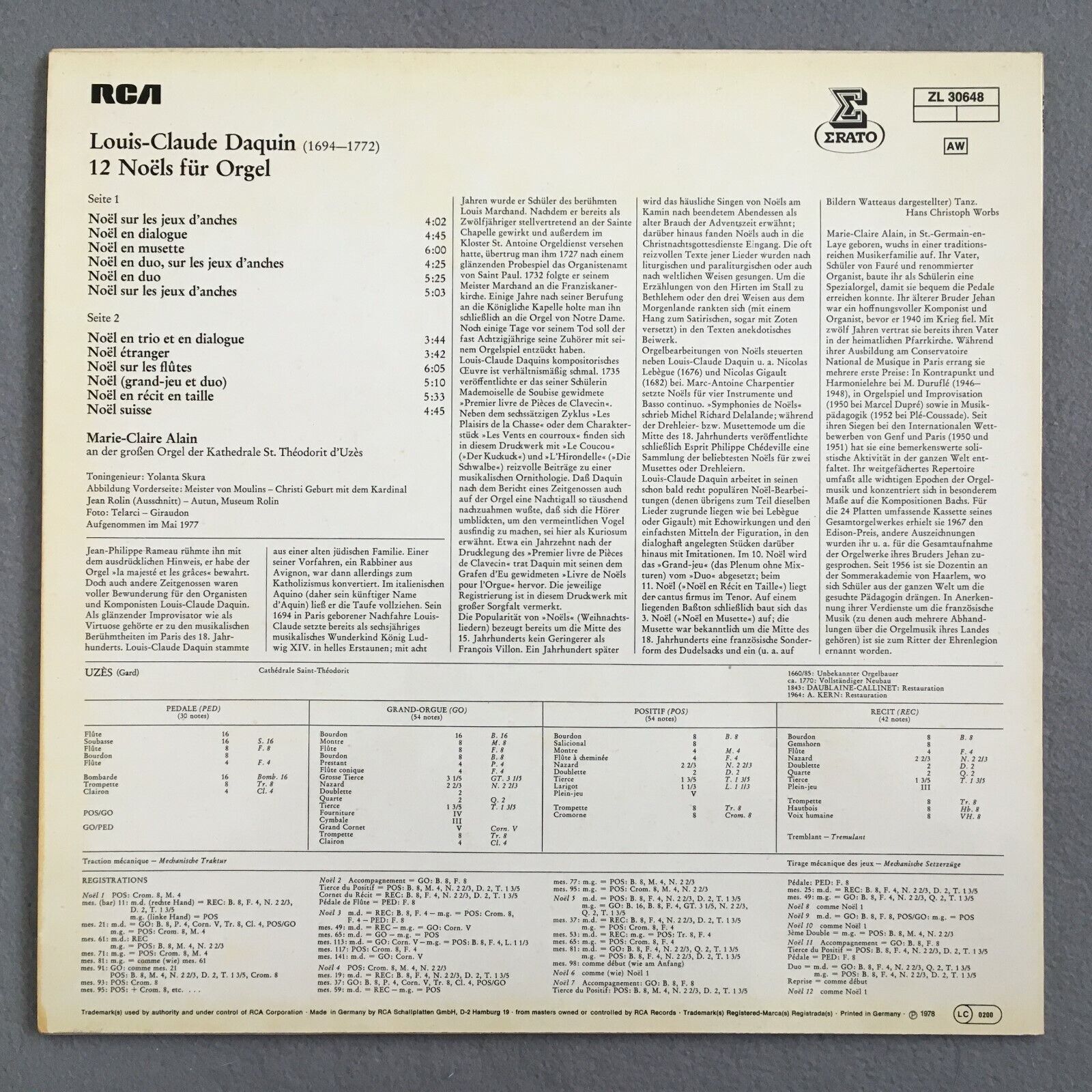 X738 Daquin 12 Noels for Organ Marie-Claire Alain Erato ZL 30648 Stereo