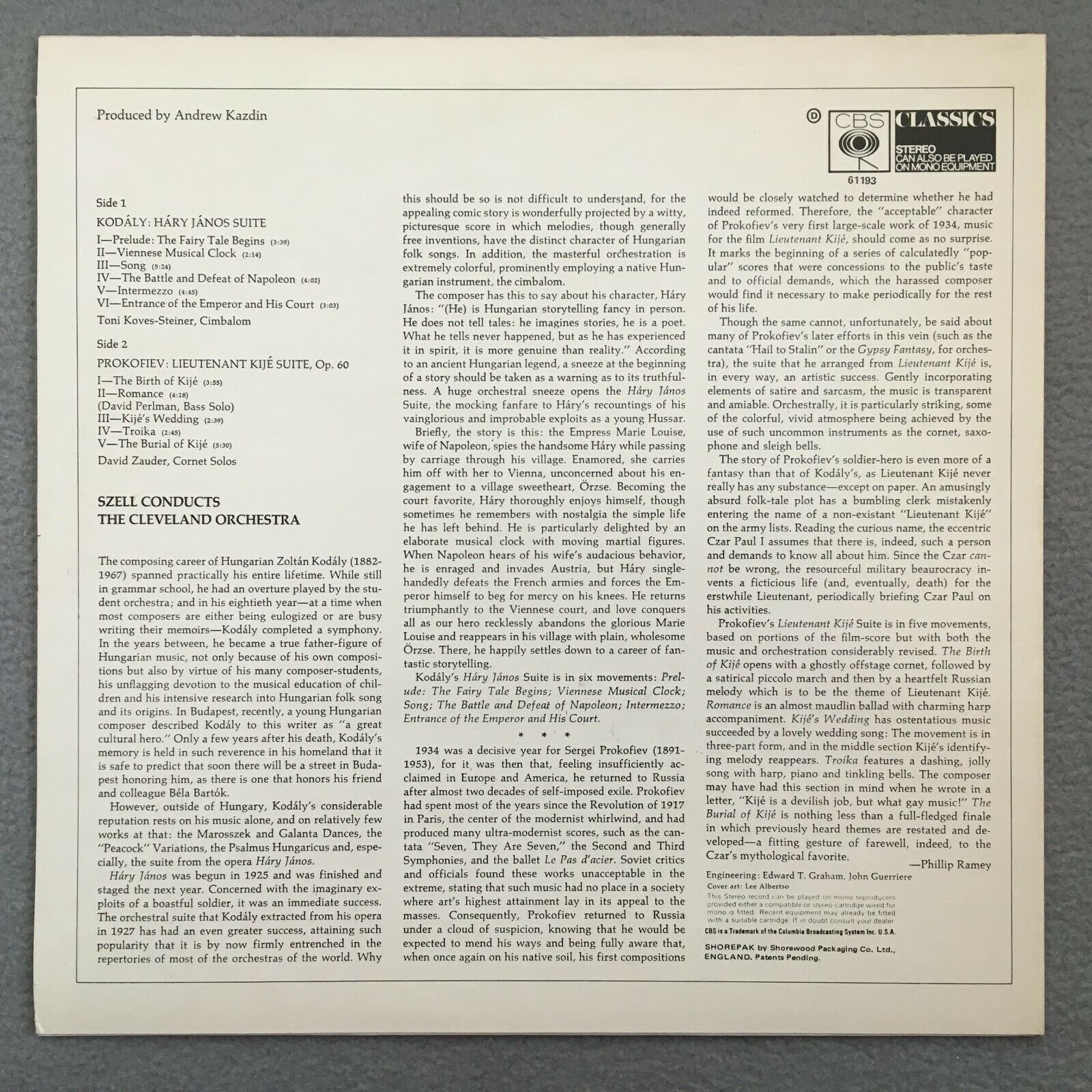 X981 Kodaly Hary Janos Suite Prokofiev Suite Szell CBS 61 193 Stereo