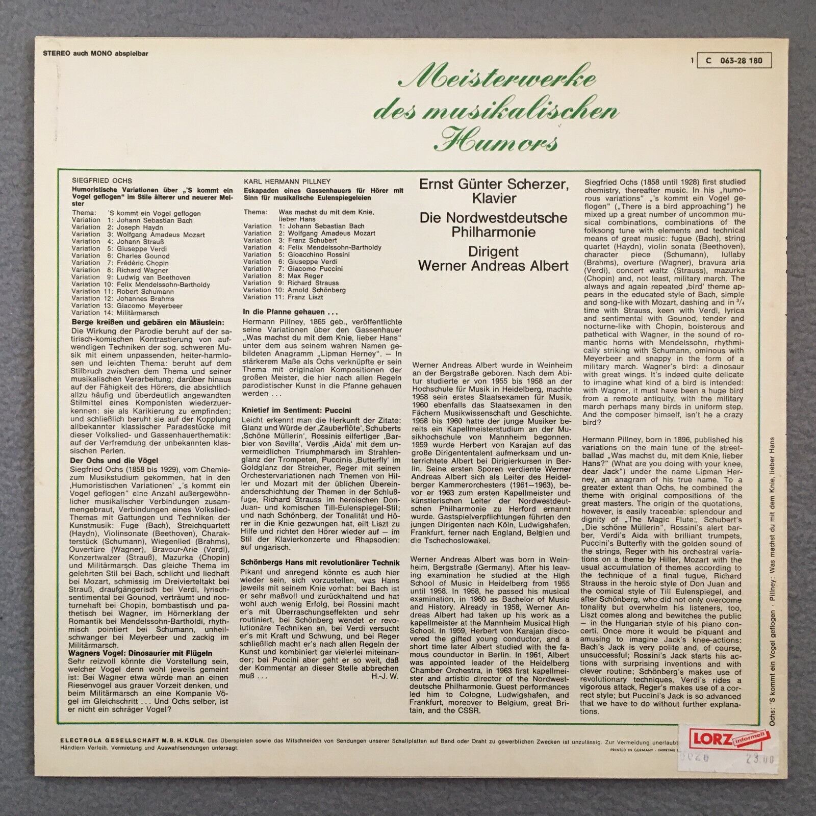 X998 Ochs Variations "´s kommt ein Vogel geflogen" Albert EMI 1 C 063-28 180 Ste