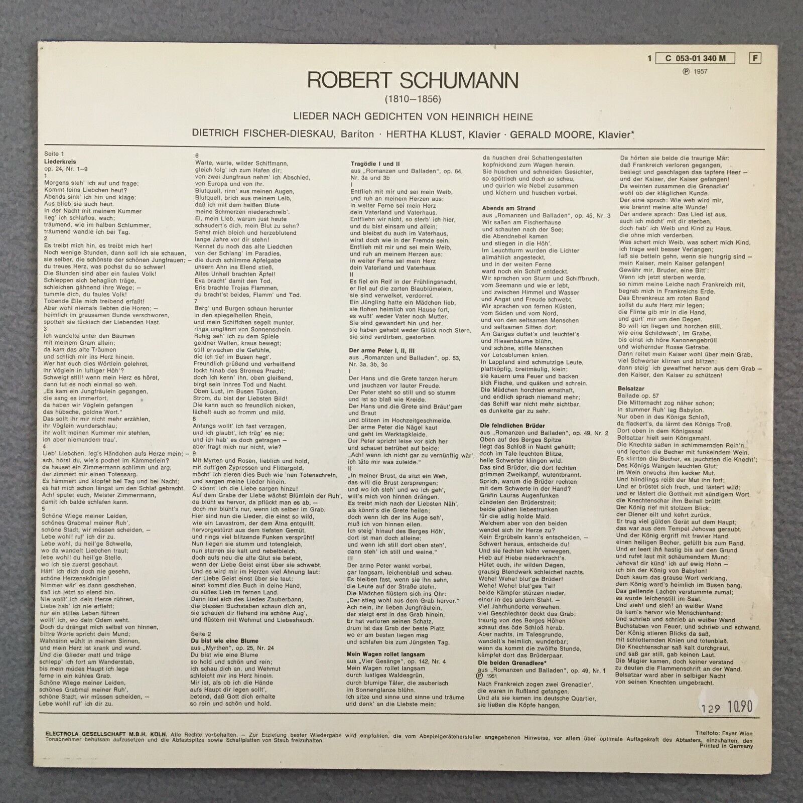 Z114 Schumann Songs Poems of Heine Fischer-Dieskau Klust Electrola 1C 053-01 340