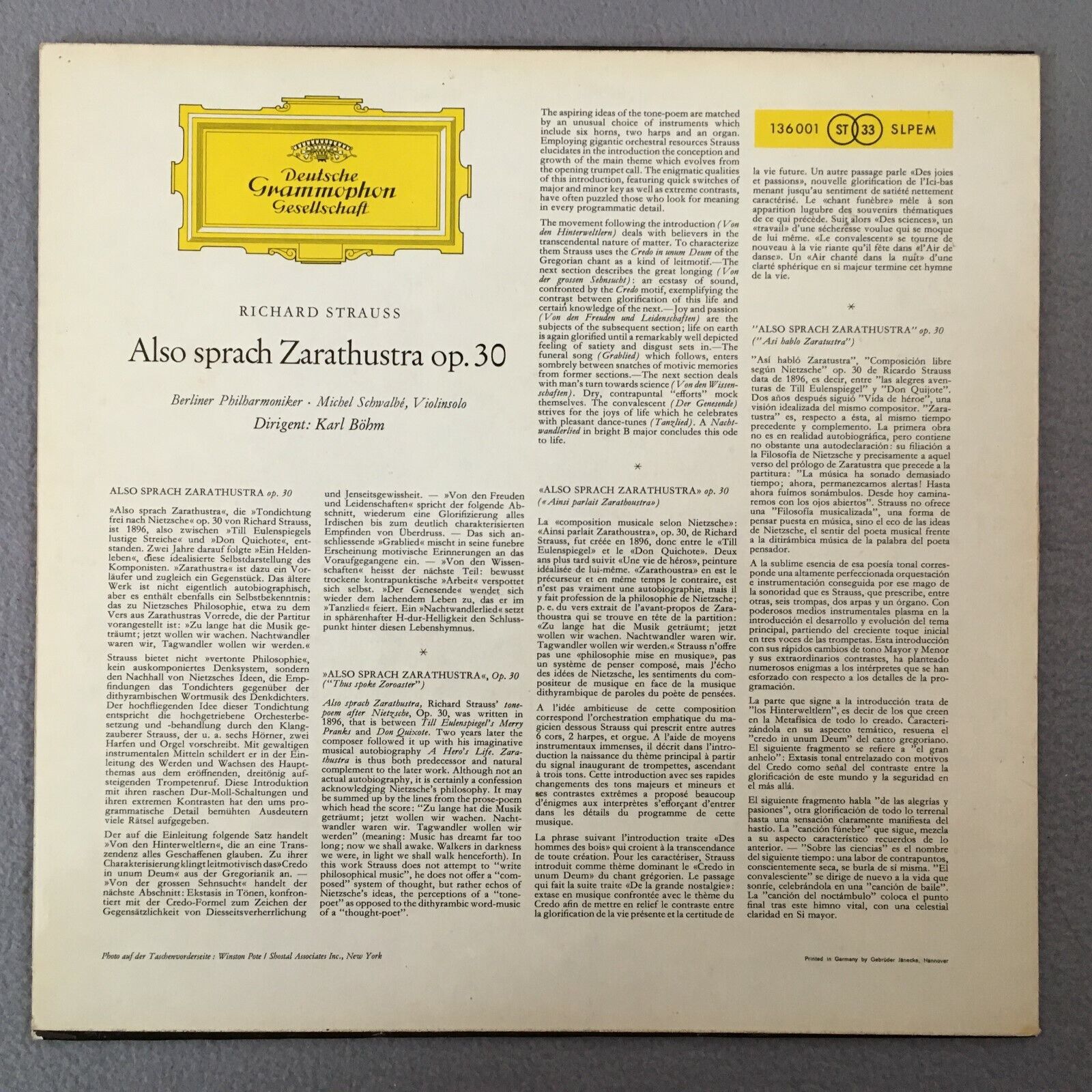 Z014 R. Strauss Also speaks Zarathustra Op.30 Bohm BPO DGG 136 001 SLPM Stereo