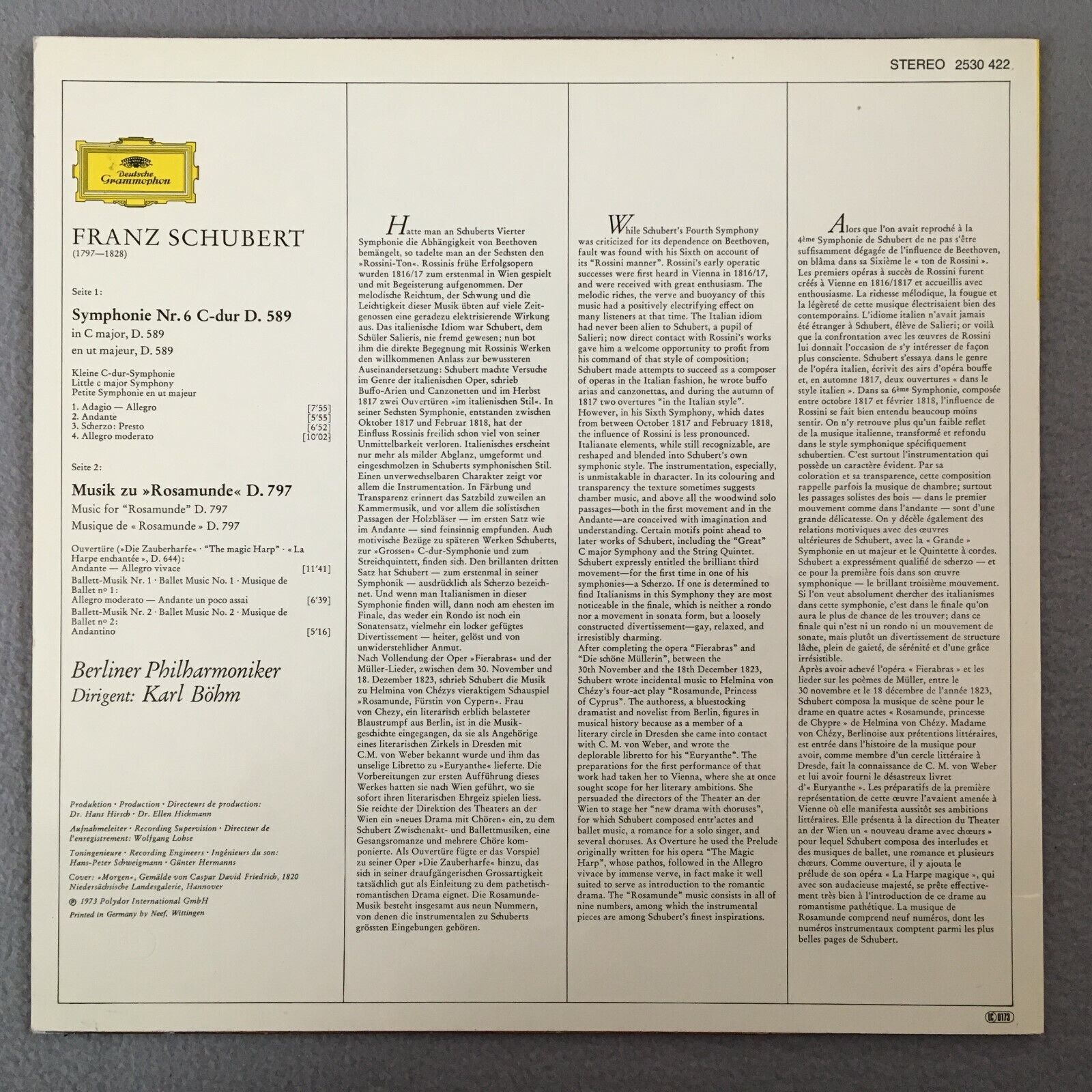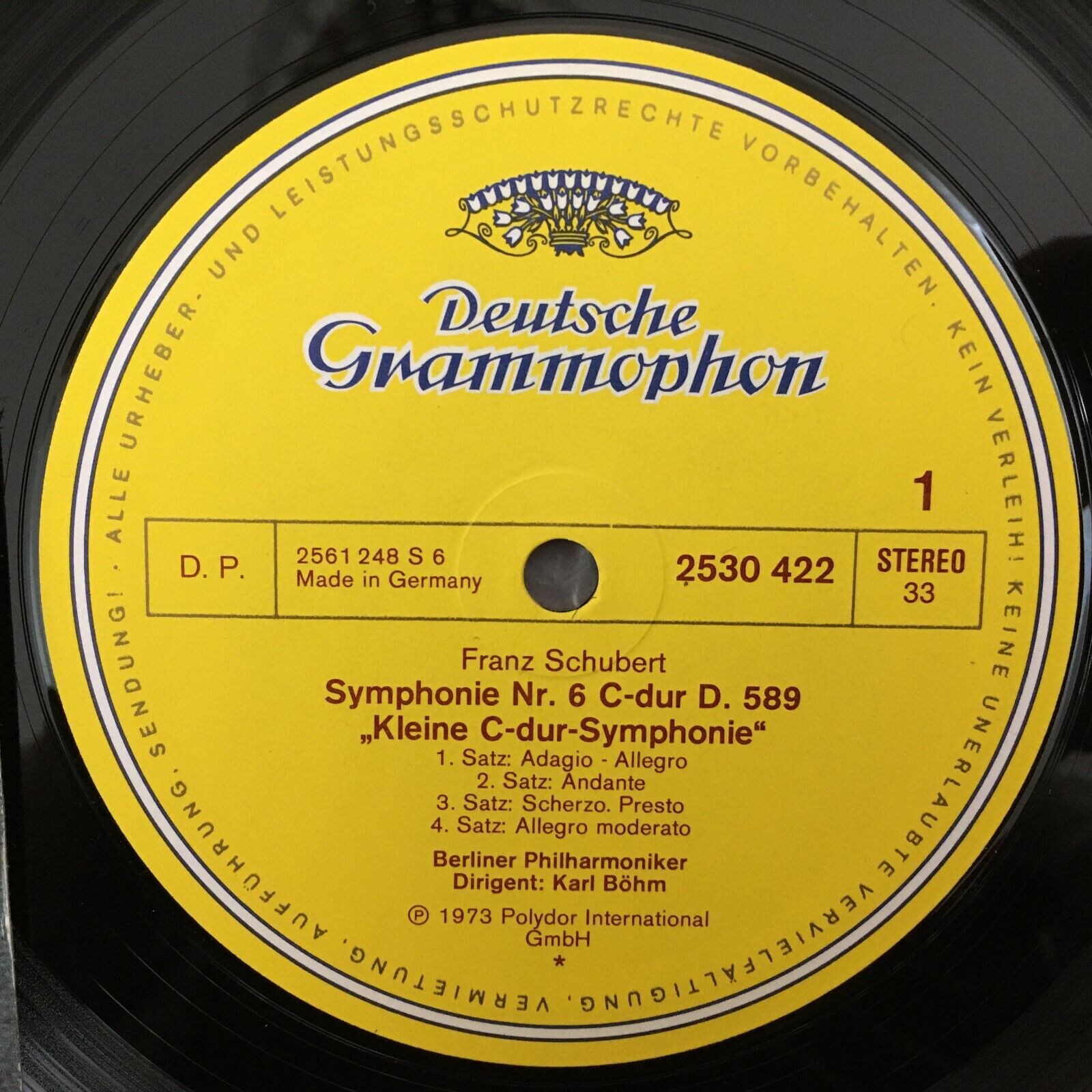 Z019 Schubert Symphony No.6 Bohm BPO DGG 2530 422 Stereo