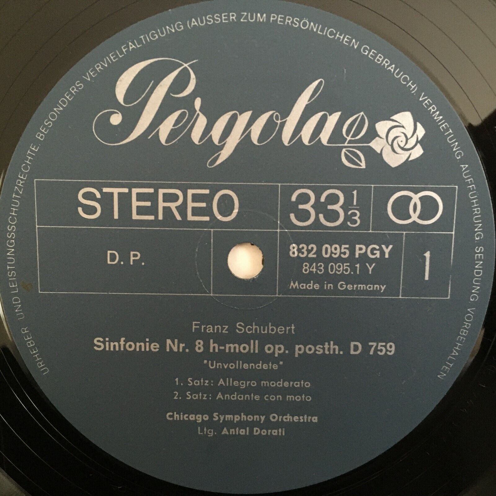 Z249 Schubert Symphony No.8 Dorati Rosamunde Otterloo Pergola 832 095 PGY Stereo