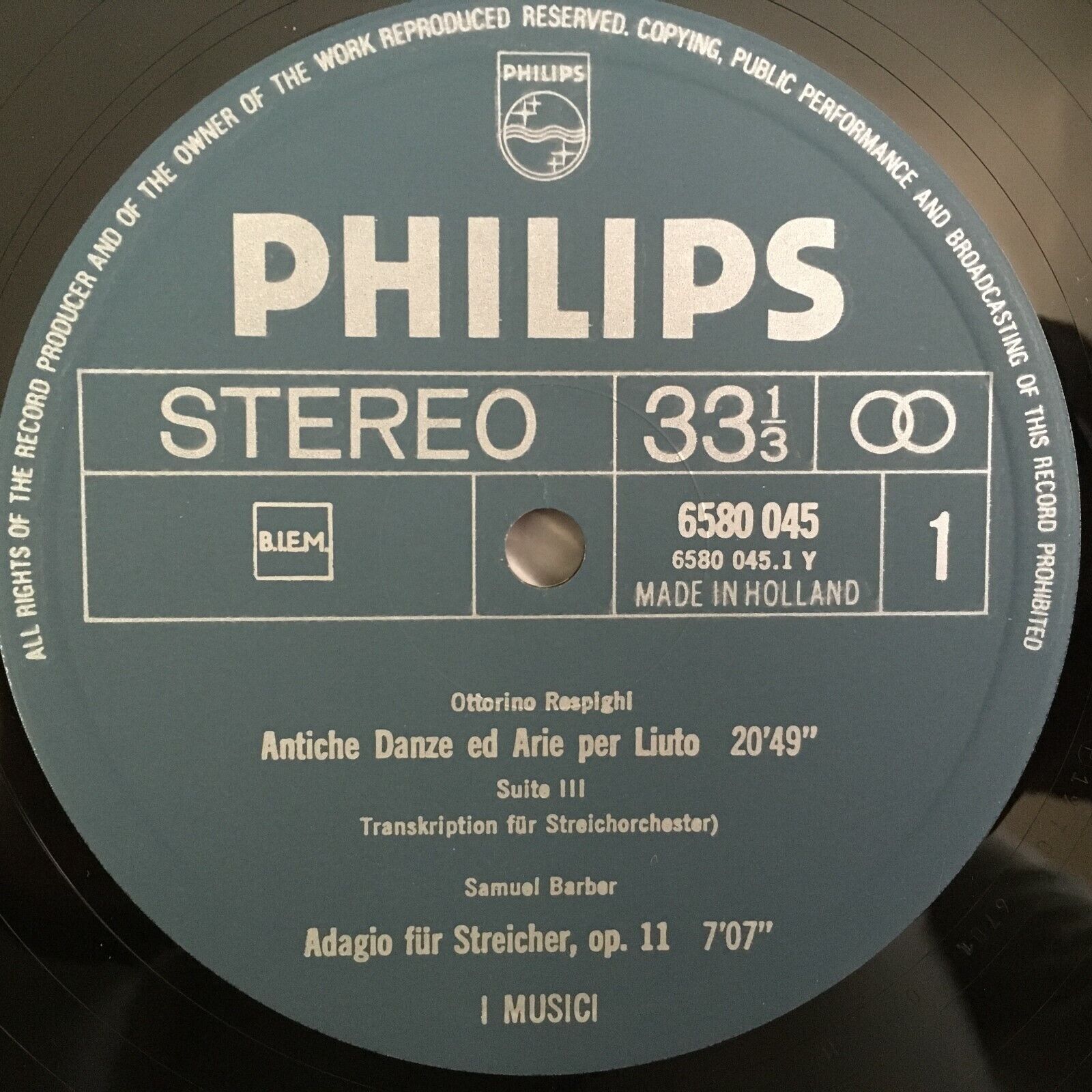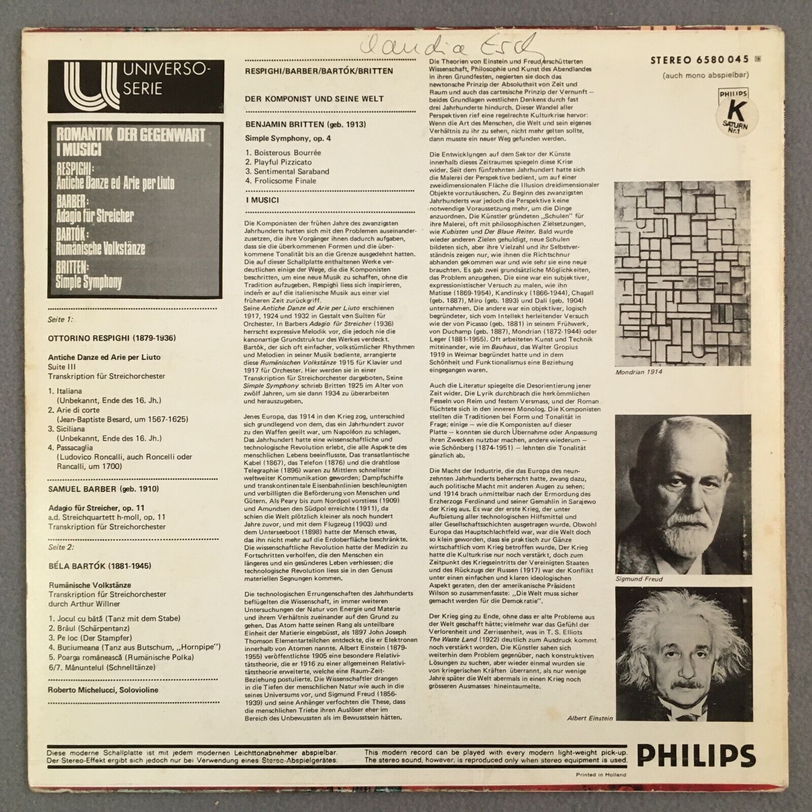 Z378 I Musici Respighi Barber Bartok Britten Michelucci Philips 6580 045 Stereo