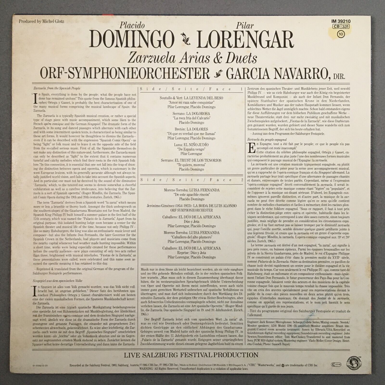 Z723 Domingo & Lorengar Arias & Duets Navarro CBS IM 39210 Digital Stereo