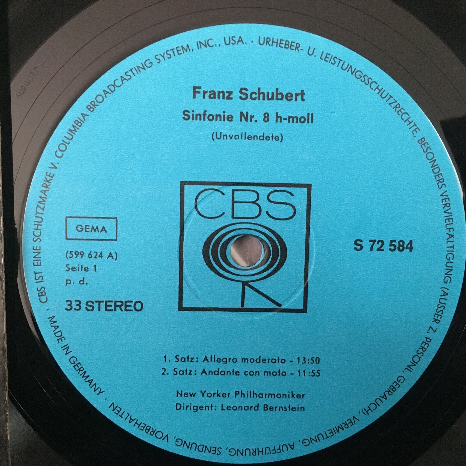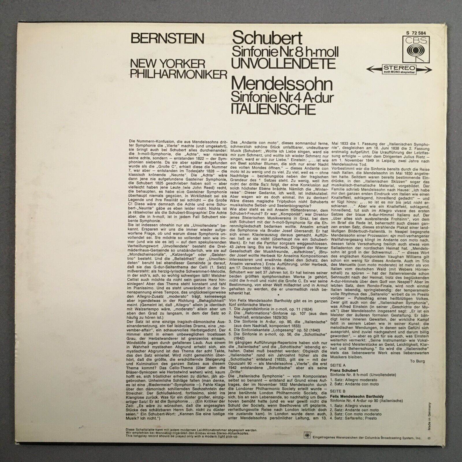 Z724 Schubert Mendelssohn Symphonies Bernstein CBS S 72 584 Stereo
