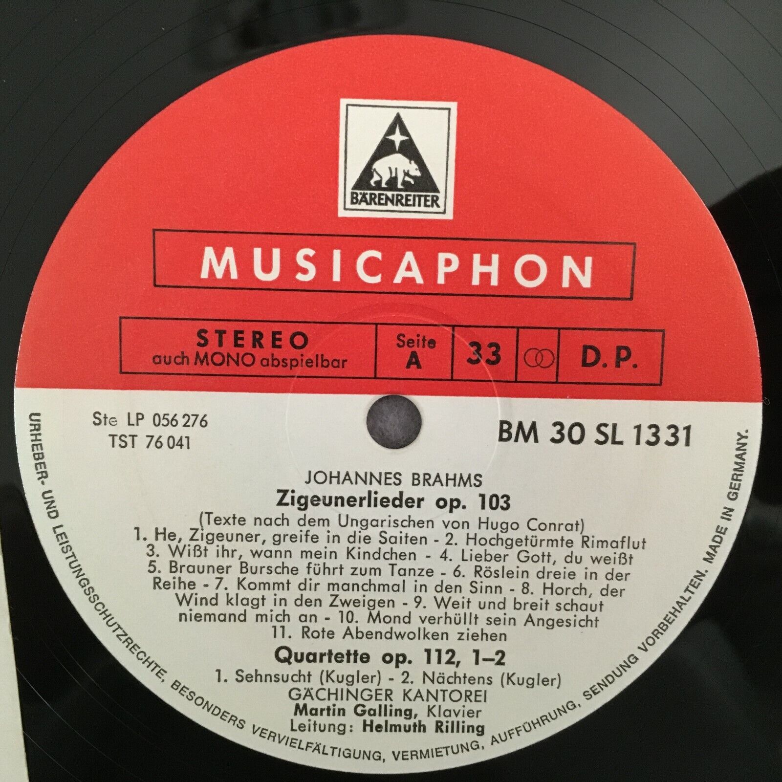 Z834 Brahms Schumann Gipsy Songs Galling Rilling Musicaphon BM 30 SL 1331 Stereo