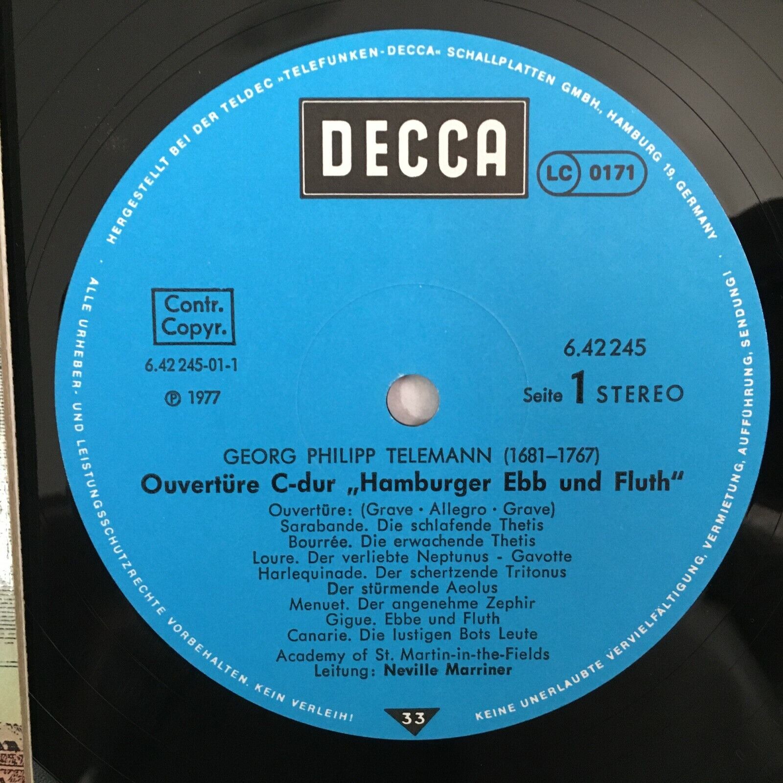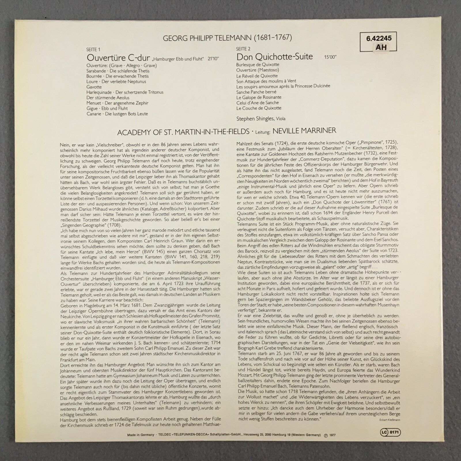 Z876 Telemann Overture Don Quichotte Suite Marriner DECCA 6.42245 AF Stereo