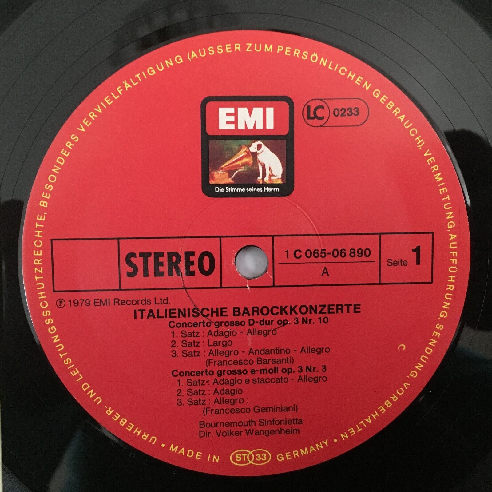 Z952 Albinoni Barsanti Geminiani Concertos Wangenheim EMI 1C 065-06 890 Stereo