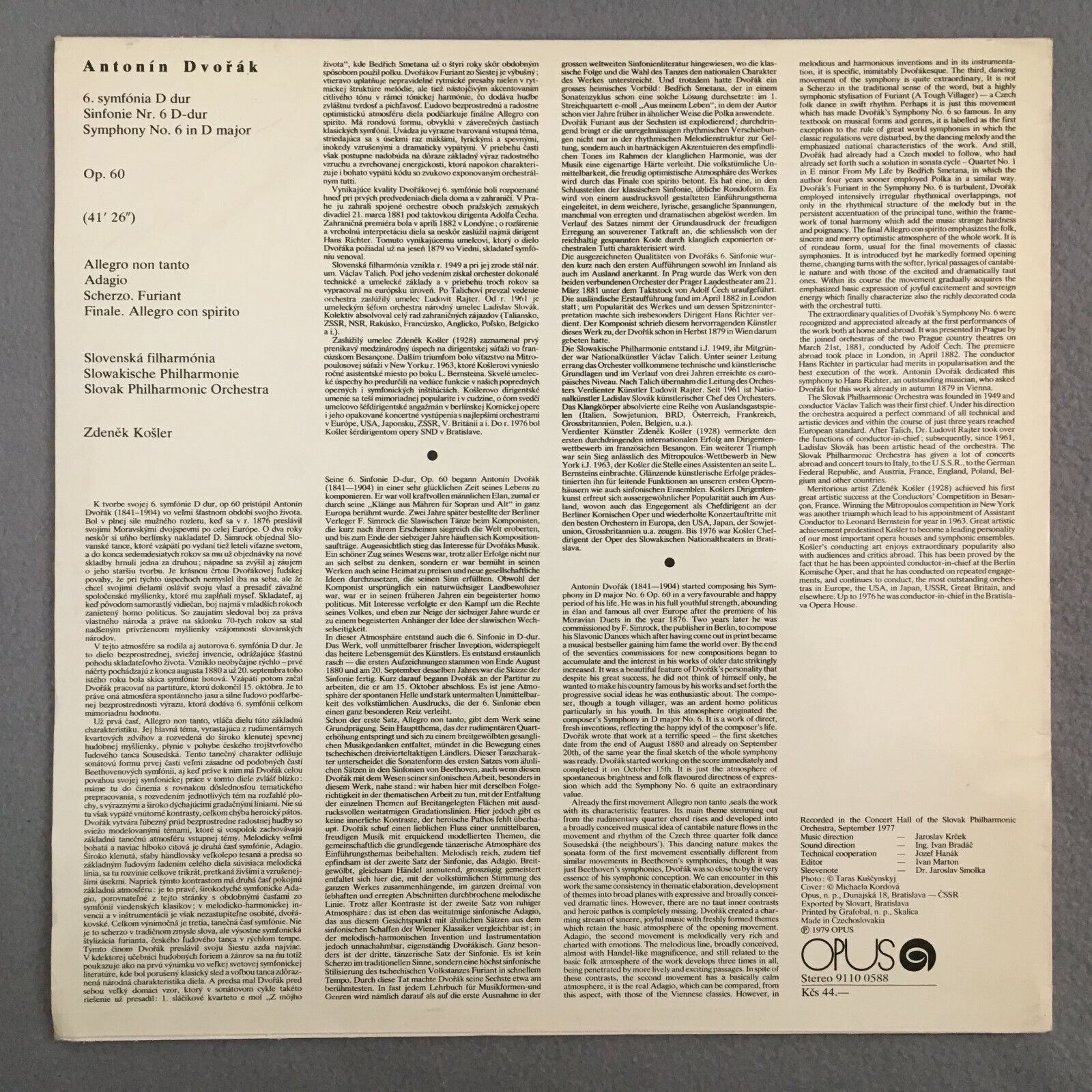Z972 Dvorak Symphony No.6 Kosler OPUS 9110 0588 Stereo