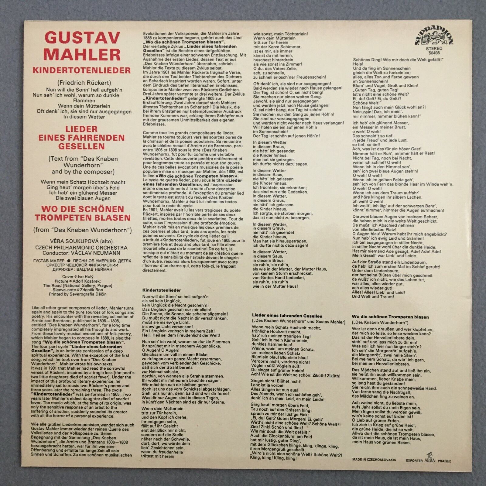 Z987 Mahler Kindertotenlieder Soukupova Neumann Supraphon 50498 Stereo