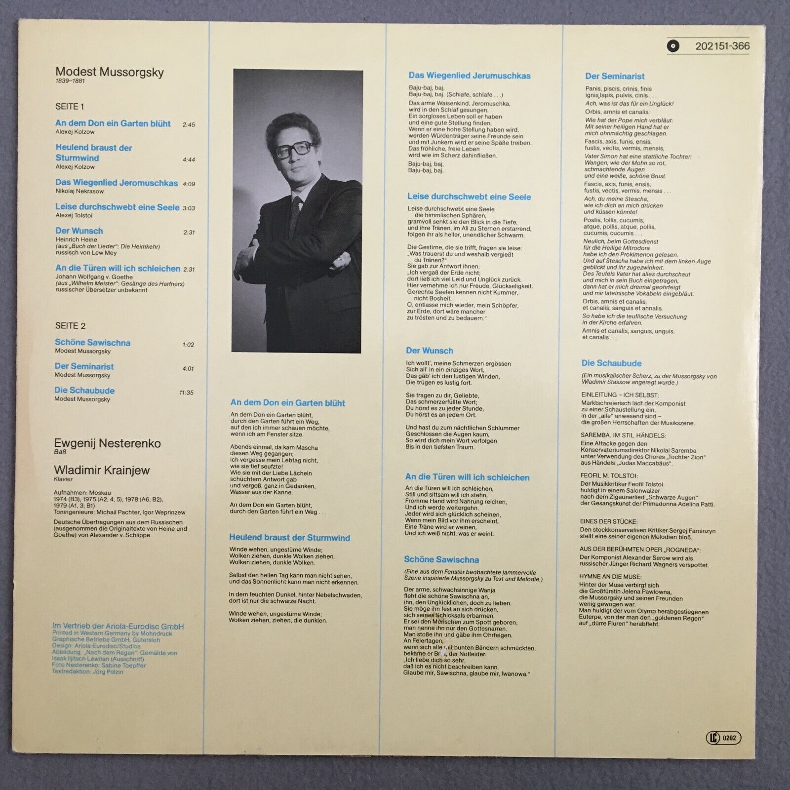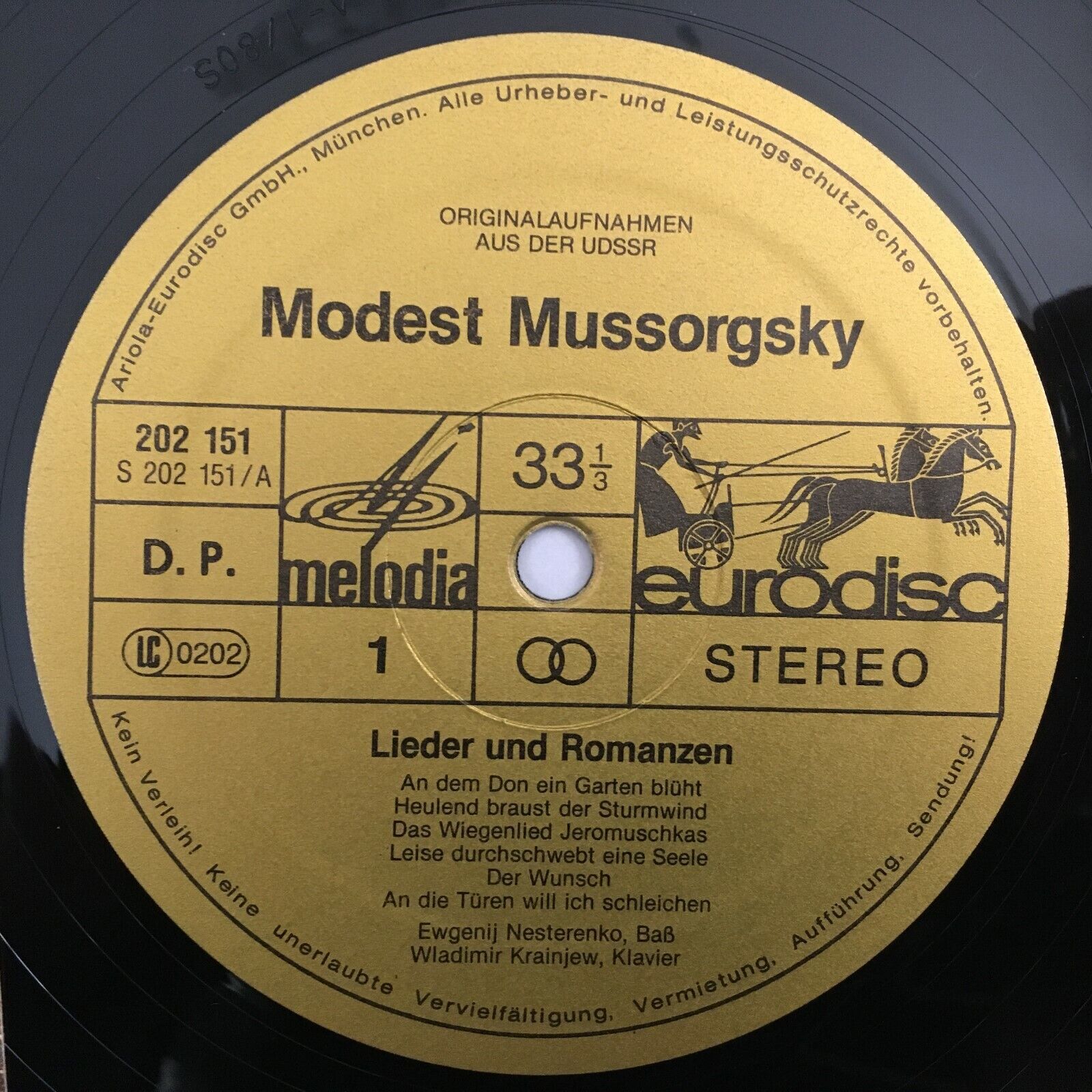 Z989 Moussorgsky Songs & Romances Nestrenko Krainjew Eurodisc 202 151-366 Stereo