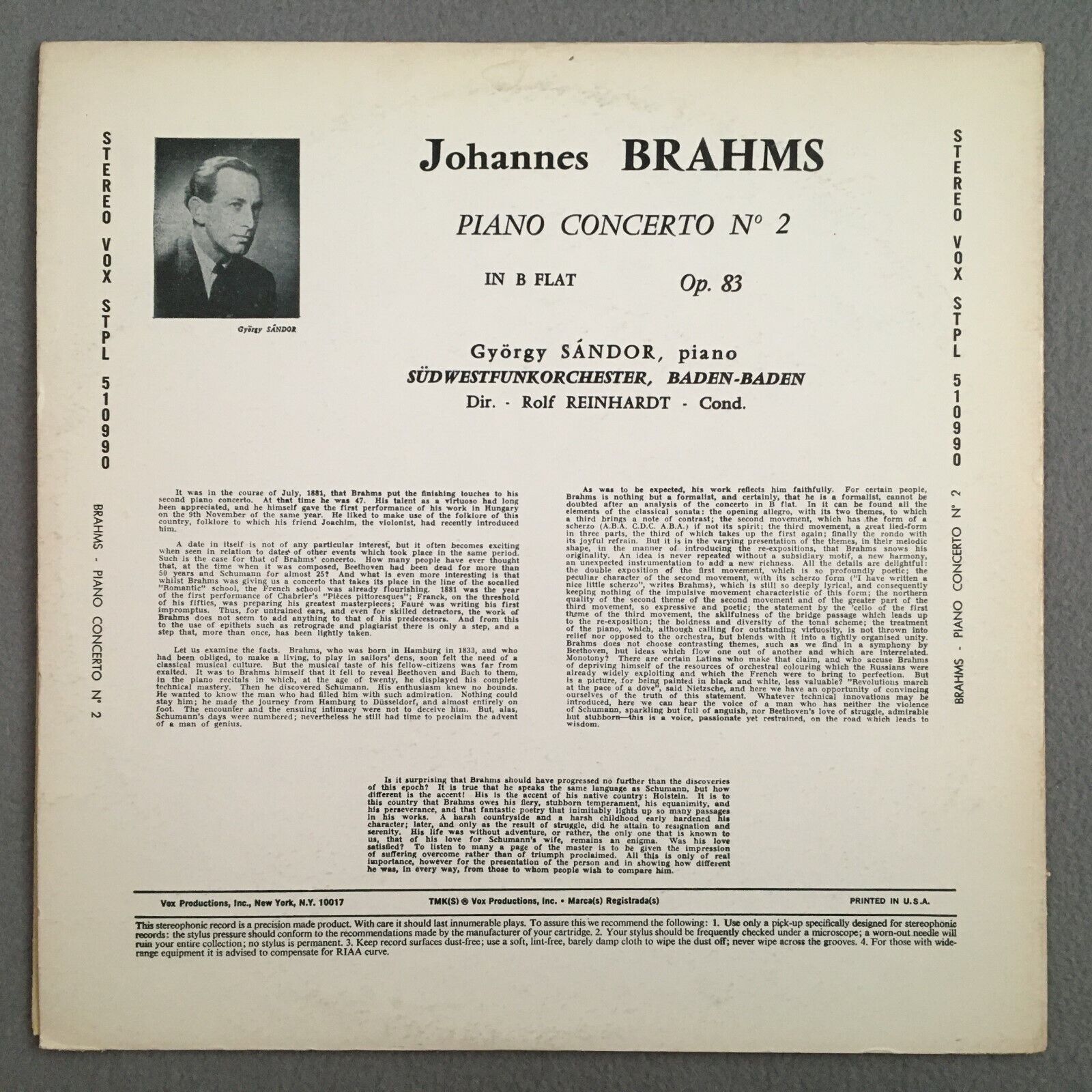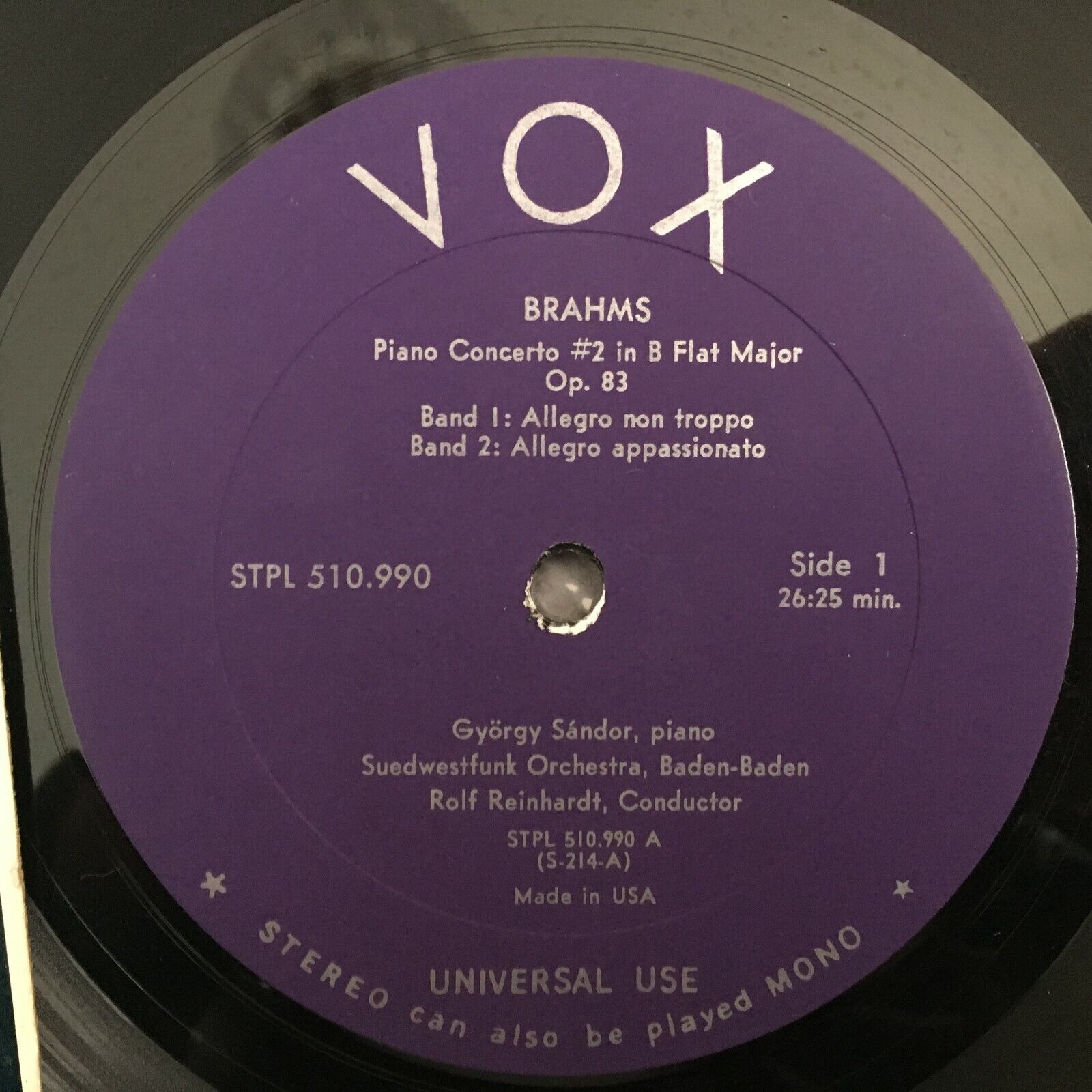 Z994 Brahms Piano Concerto No.2 Sandor Reinhardt VOX STPL 510.990 Stereo
