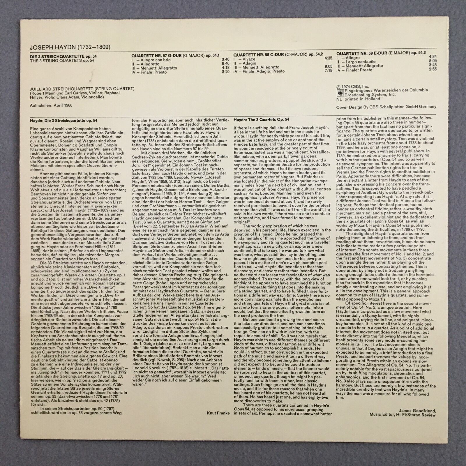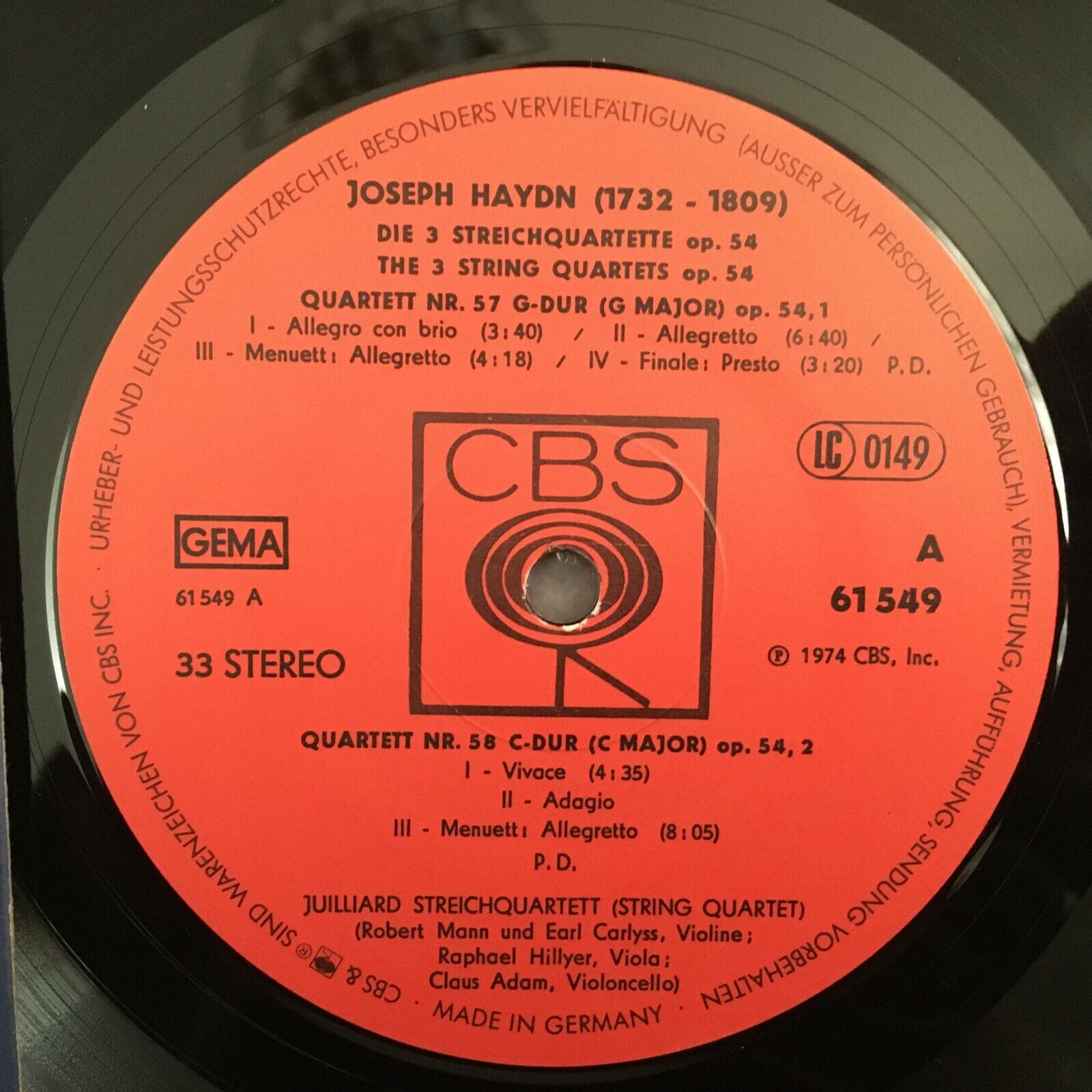 Z995 Haydn The 3 String Quartets Juilliard String Quartet CBS 61 549 Stereo