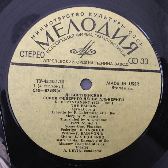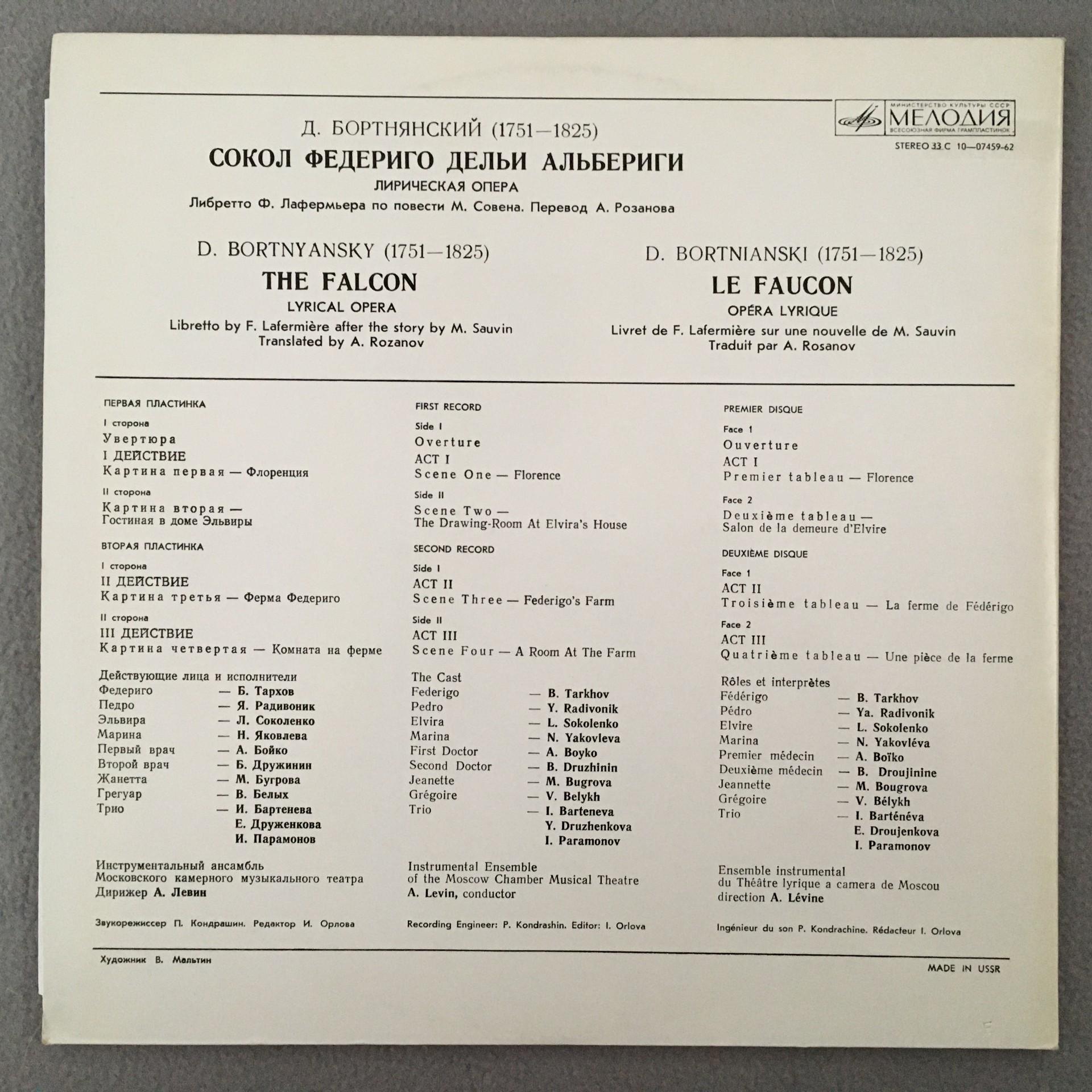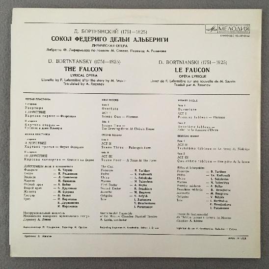 M068 Bortnyansky The Falcon Levin 2LP Melodiya 33 C 10 07459-62 Stereo