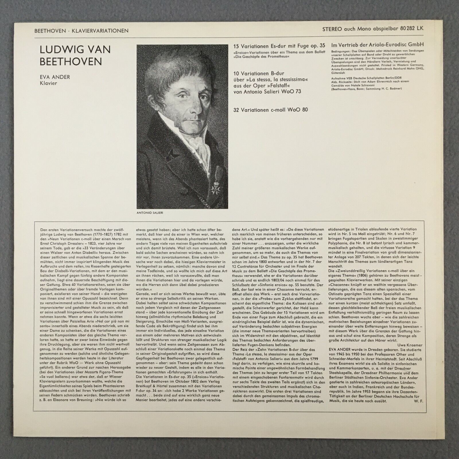 Y010 Beethoven Variations Ander Piano Eurodisc 80 282 LK Stereo
