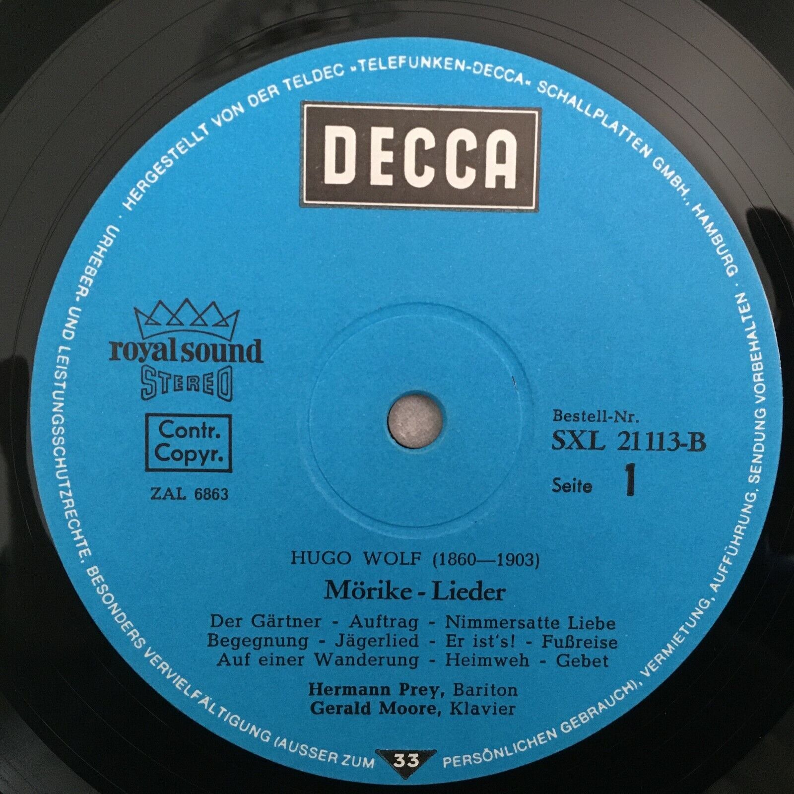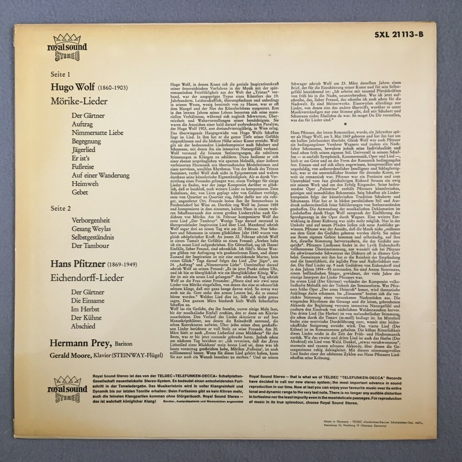Y026 Wolf Songs Pfitzner Eichendorff Songs Prey Moore DECCA SXL 21 113-B Stereo
