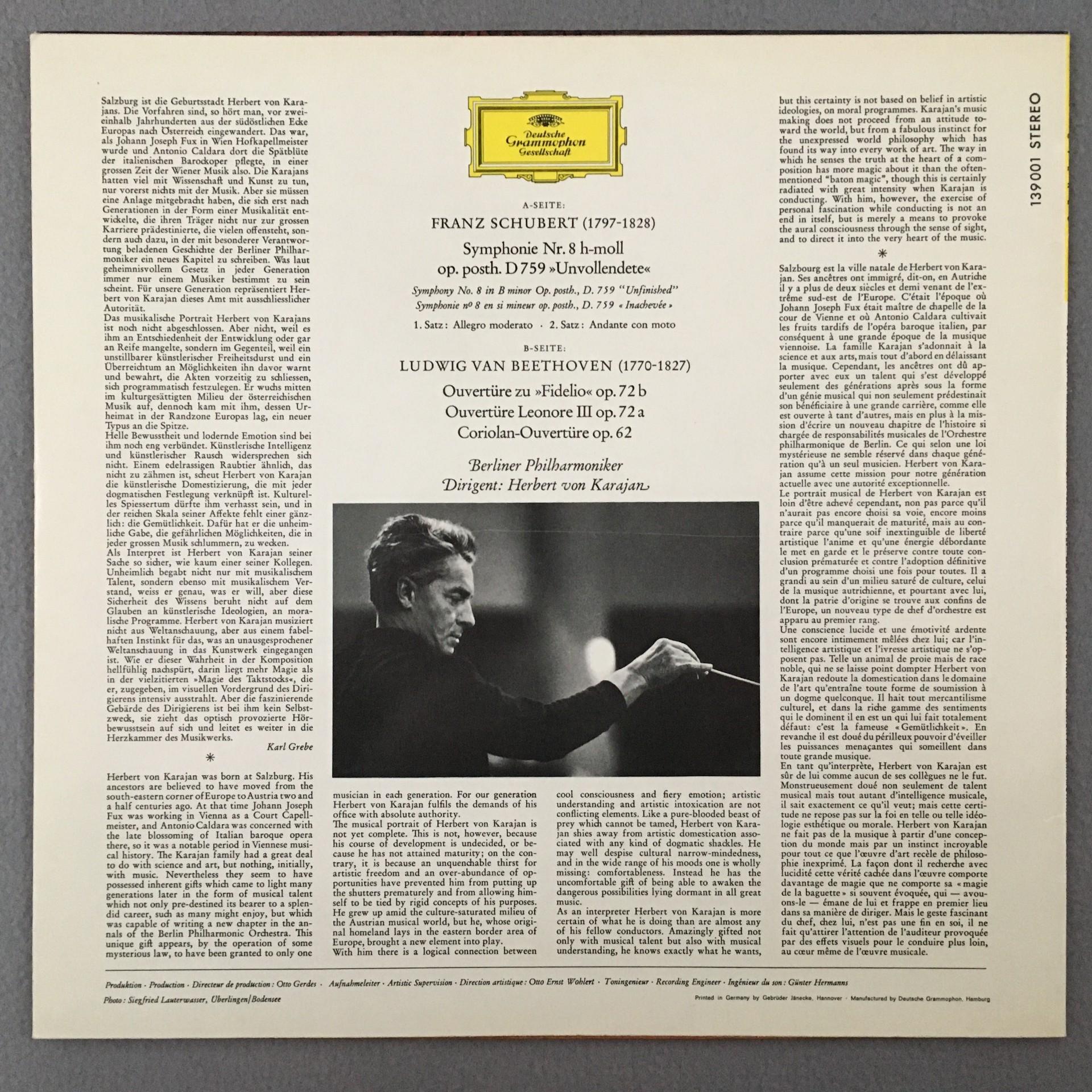 M075 Schubert Symphony Beethoven Overture Karajan DGG 139 001 SLPM Stereo
