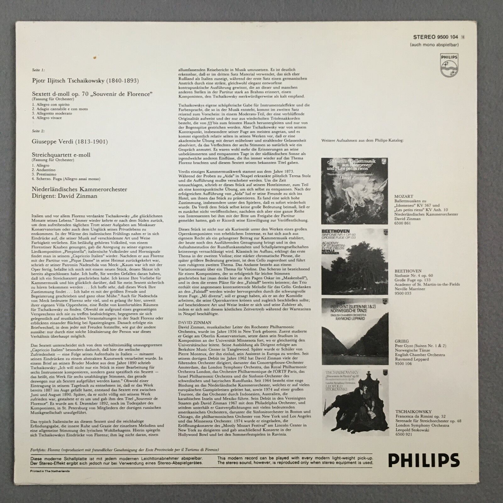 Y058 Tchaikovsky Sextet Verdi String Quartet Zinman Philips 9500 104 Stereo