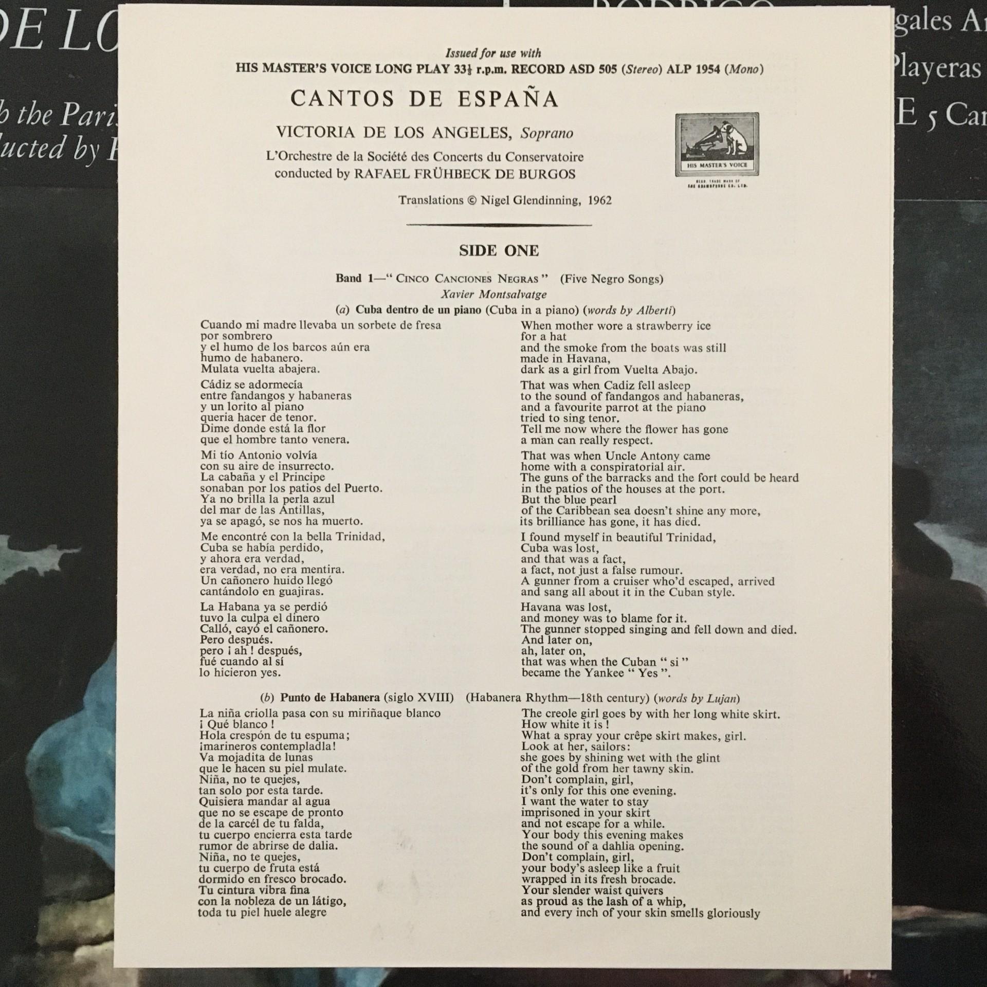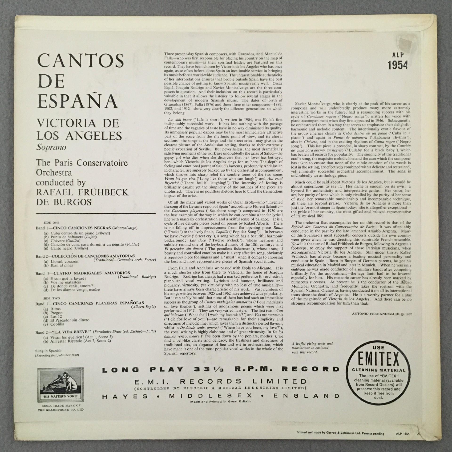 M101 De Los Angeles Spanish Songs De Burgos HMV ALP 1954