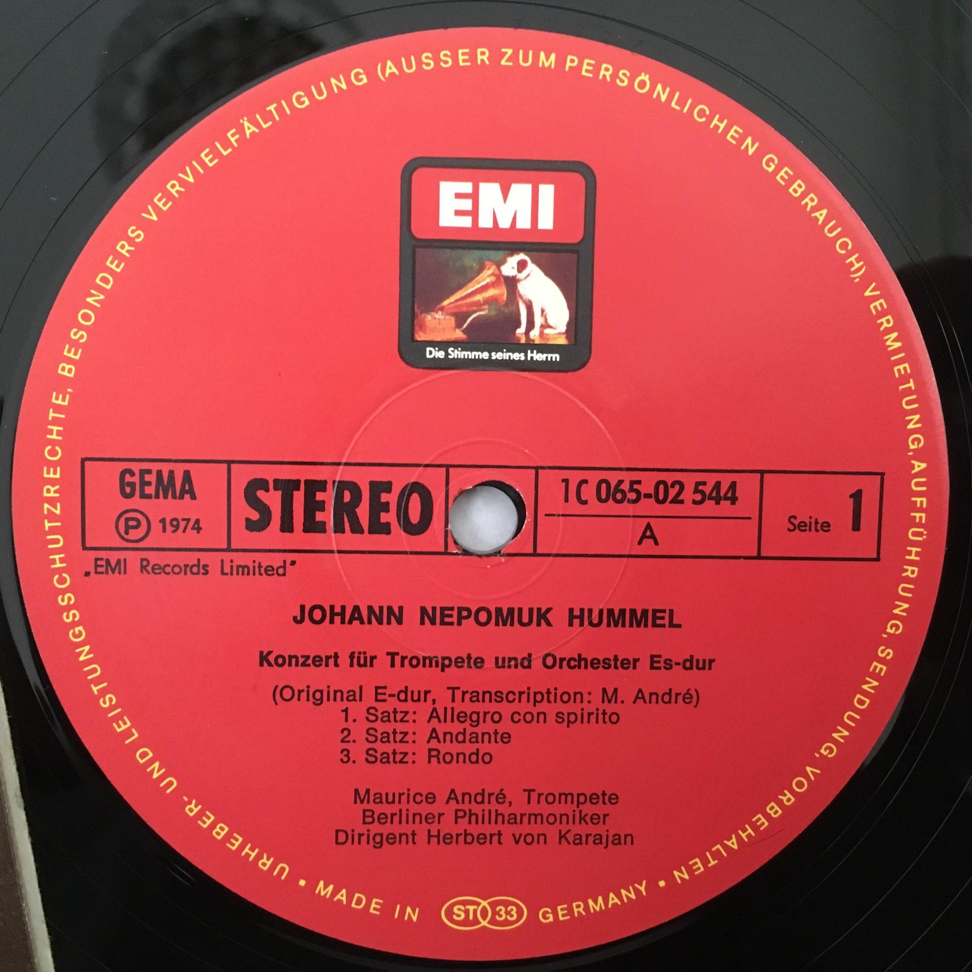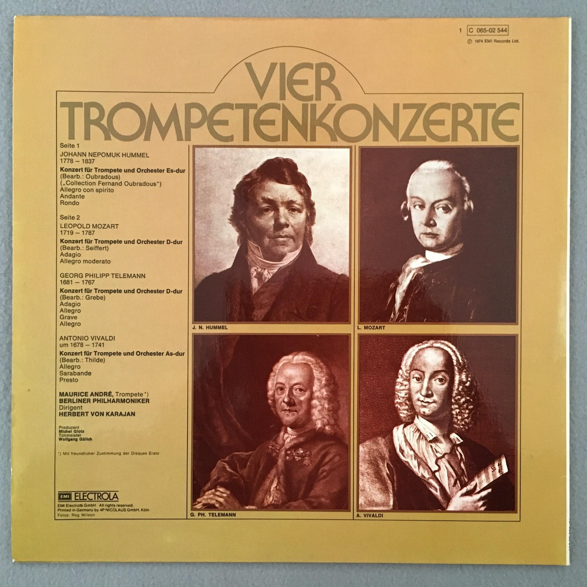 M105 4 Trumpet Concertos Vivaldi Telemann Andre Karajan EMI 1C 065-02 544 Stereo