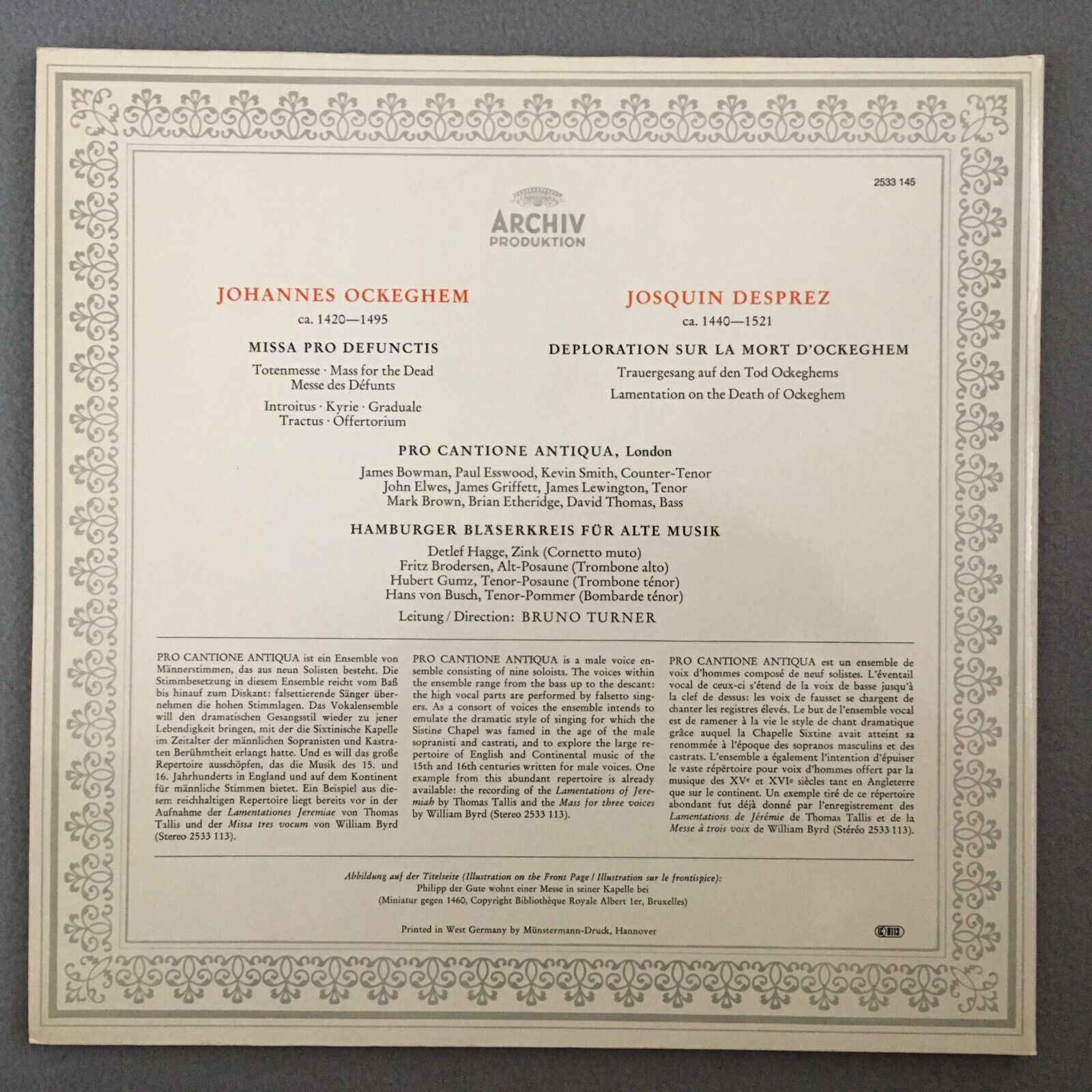 Y142 Ockeghem Mass for the Death Desprez Turner Archiv DGG 2533 145 Stereo