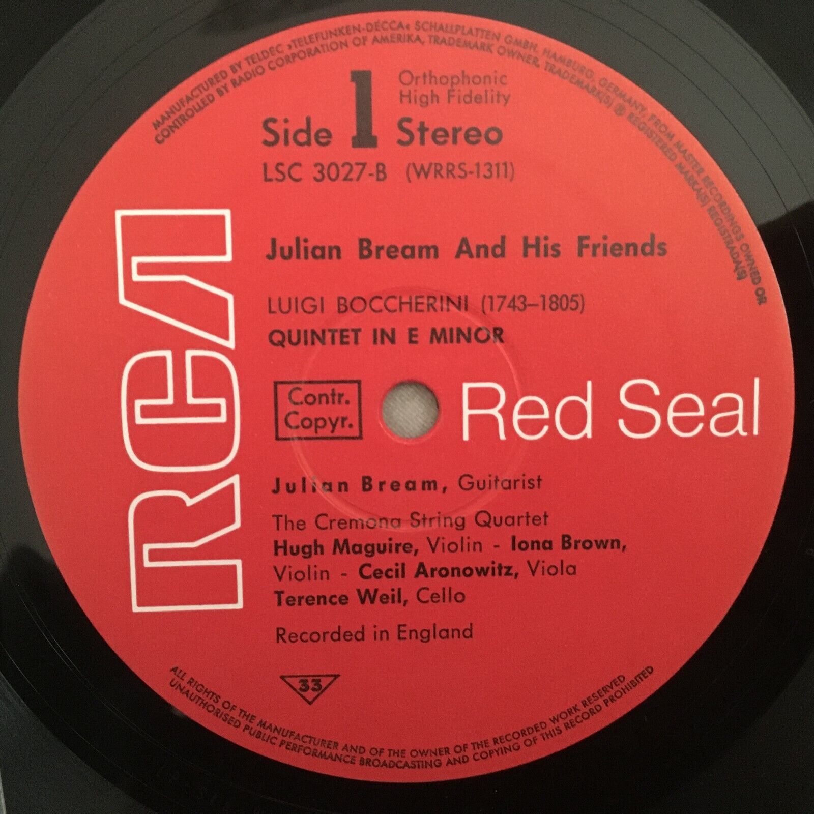 Y312 Bream & his Friends Boccherini Haydn Guitar Quartets RCA LSC 3027-B Stereo