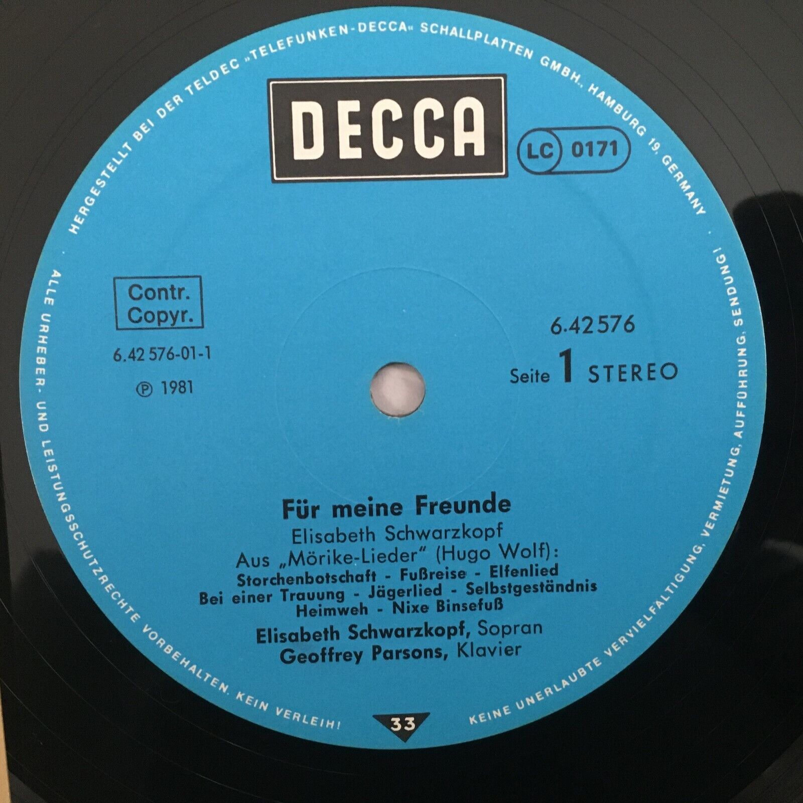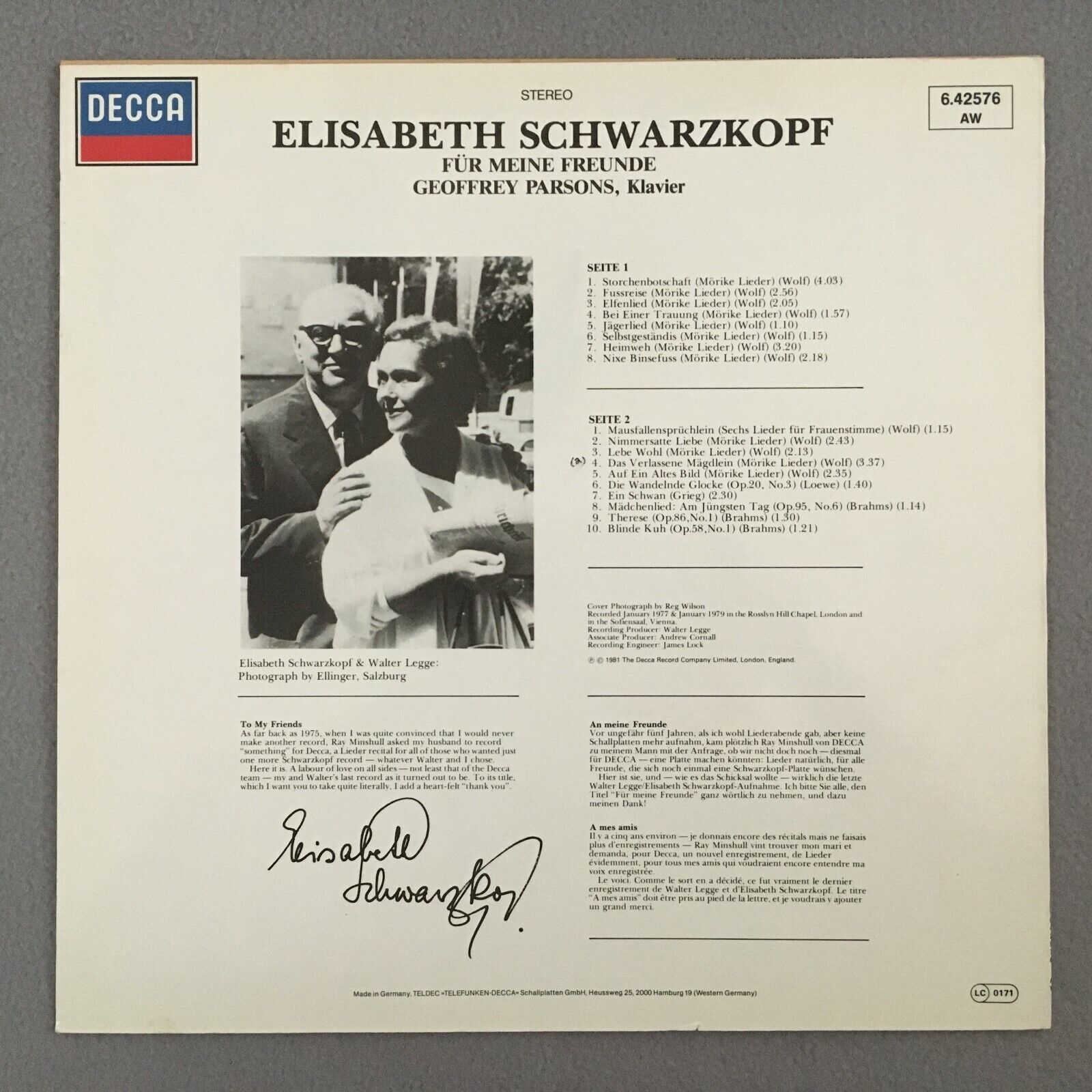 Y316 Elisabeth Schwarzkopf For My Friends DECCA 6.42576 AW Stereo