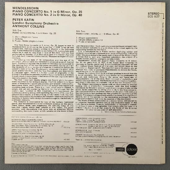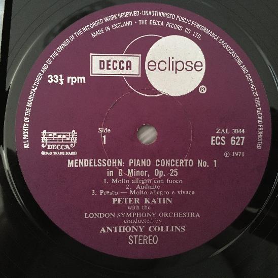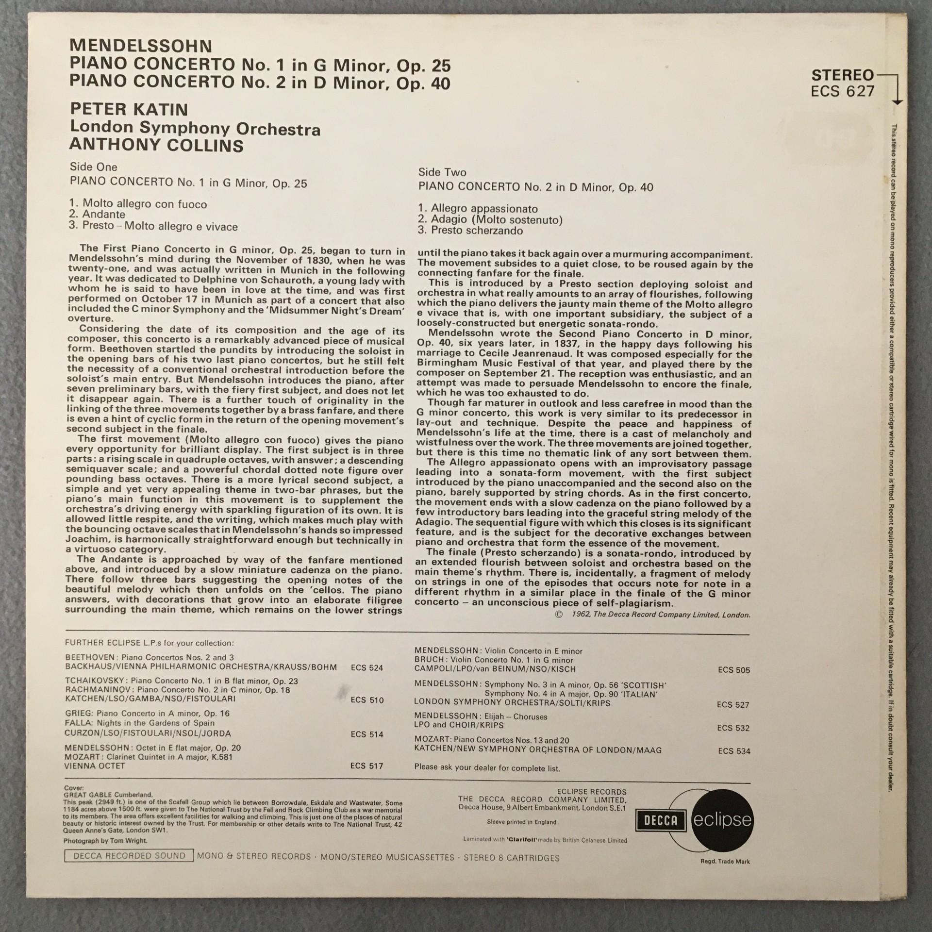 M122 Mendelssohn Piano Concertos No.1 & 2 Katin Collins DECCA ECS 627 Stereo
