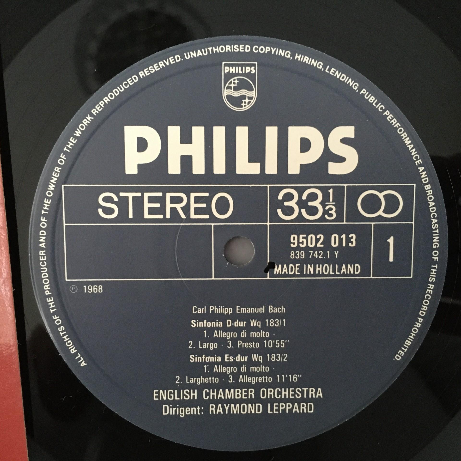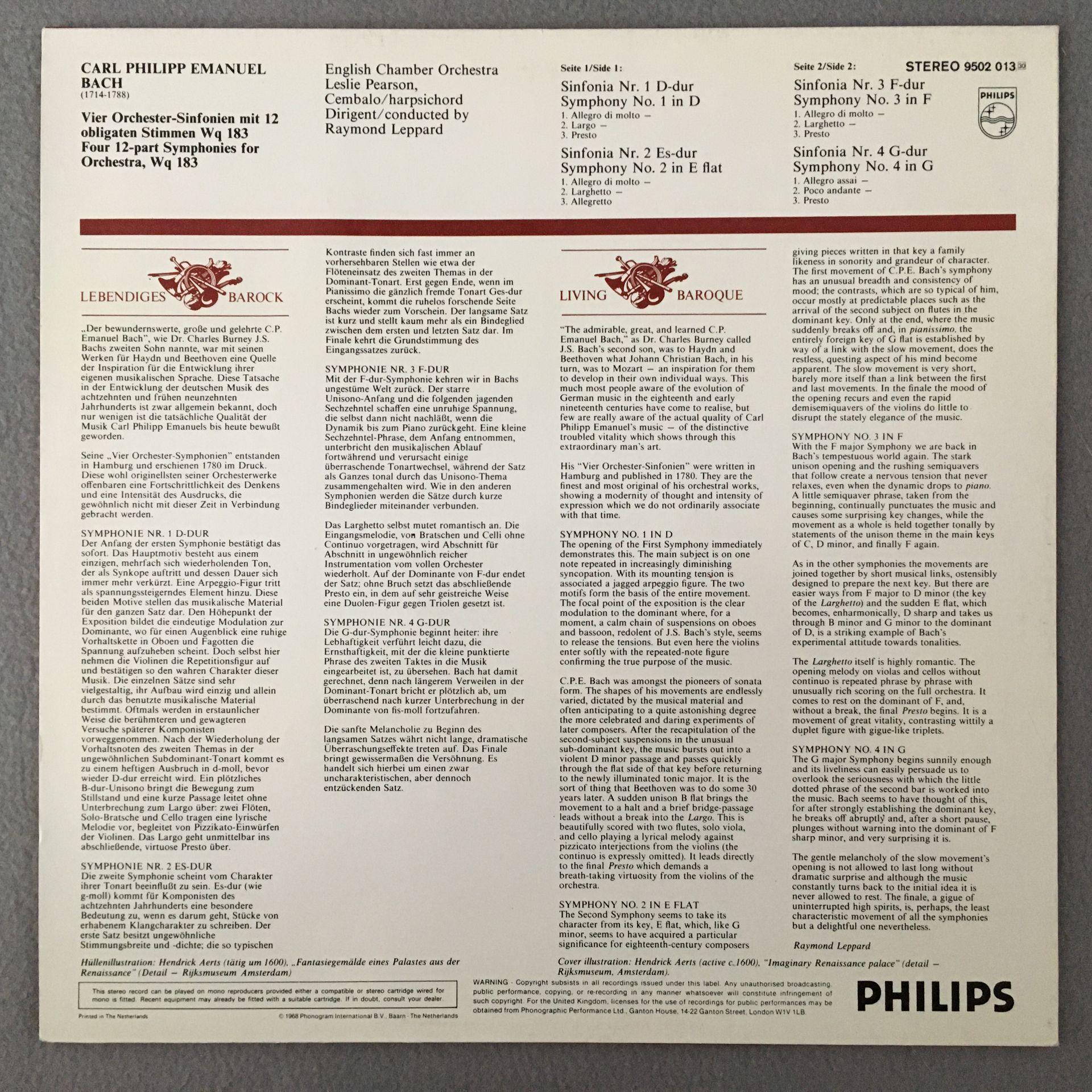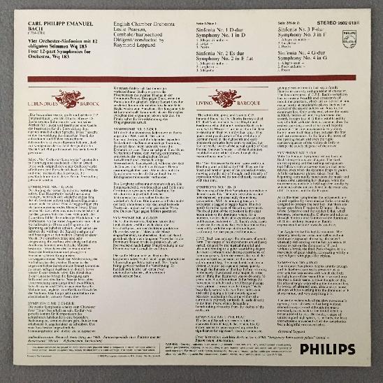 M123 C.P.E. Bach Hamburg Symphonies Pearson Leppard Philips 9502 013 Stereo